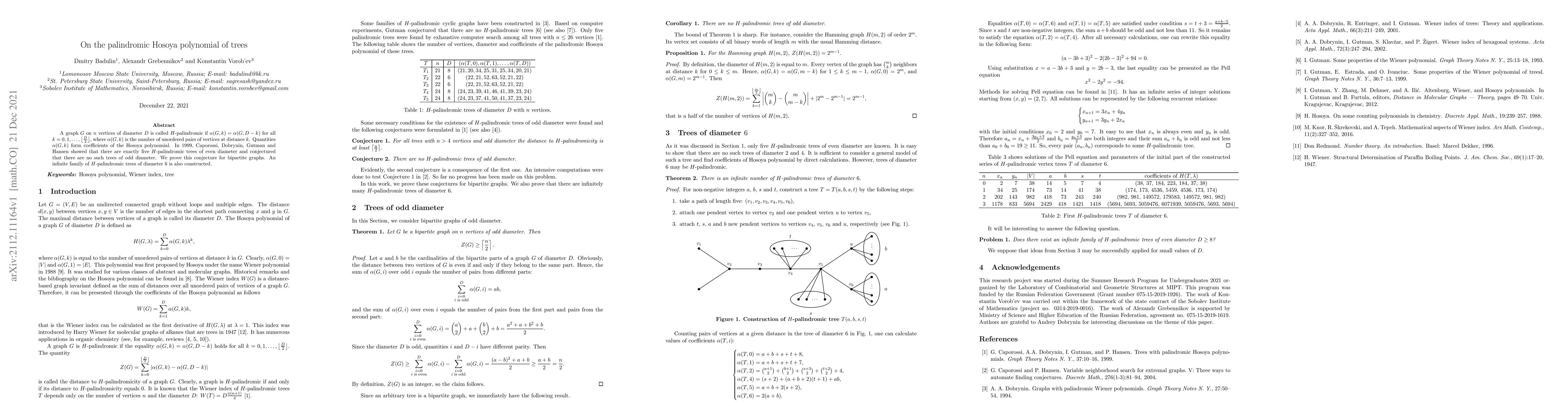 The research extends previous work by Caporossi et al. by proving Conjecture 2 for bipartite graphs and constructing a novel infinite family of H-palindromic trees of diameter 6, addressing a long-standing open problem in graph theory.