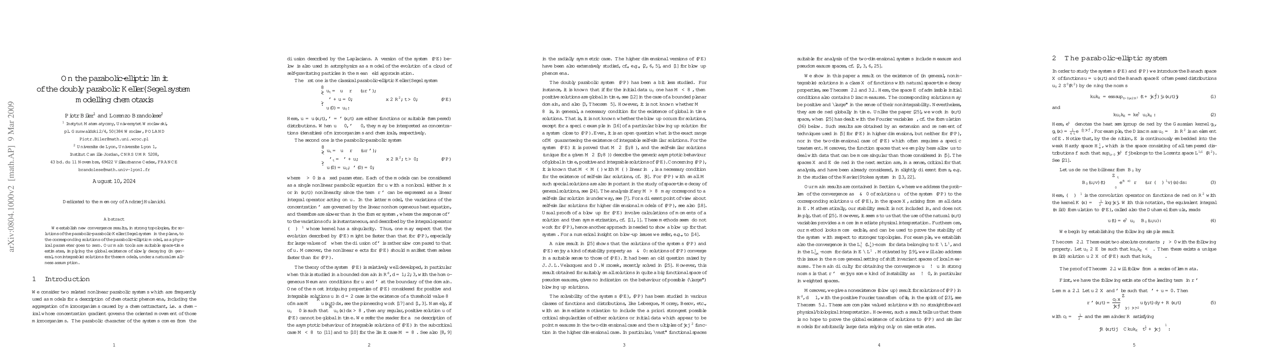 This paper investigates the convergence of solutions from the parabolic-parabolic Keller-Segel system to the parabolic-elliptic model as a physical parameter approaches zero, using space-time estimates to prove global existence of solutions under a smallness condition.