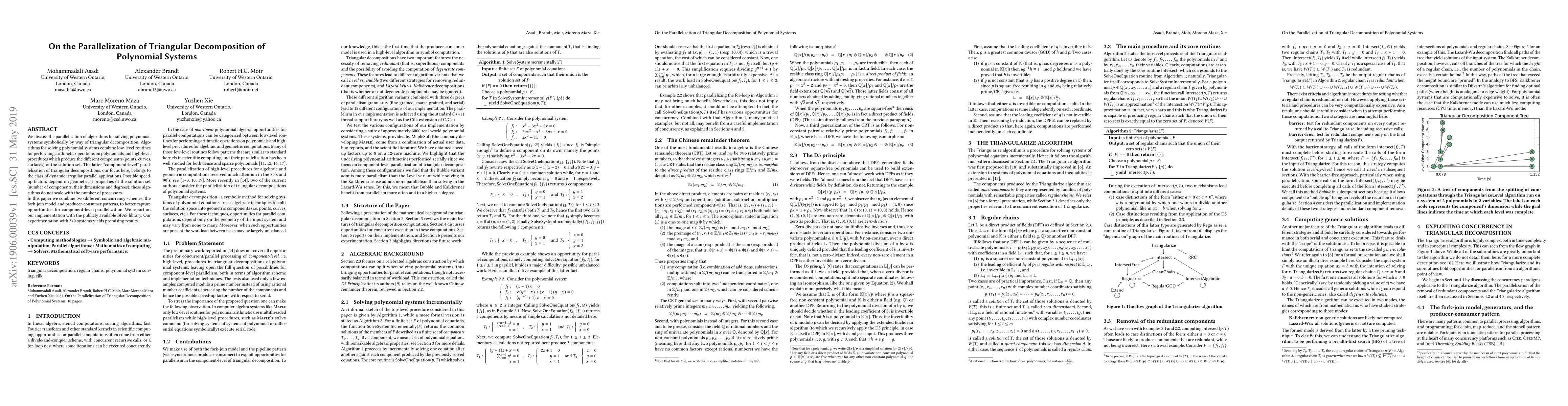 This paper explores parallelization strategies for solving polynomial systems through triangular decomposition, focusing on component-level parallelism. It combines fork-join and producer-consumer models to optimize parallel execution, demonstrating promising results in experiments with 340 systems using the BPAS library.