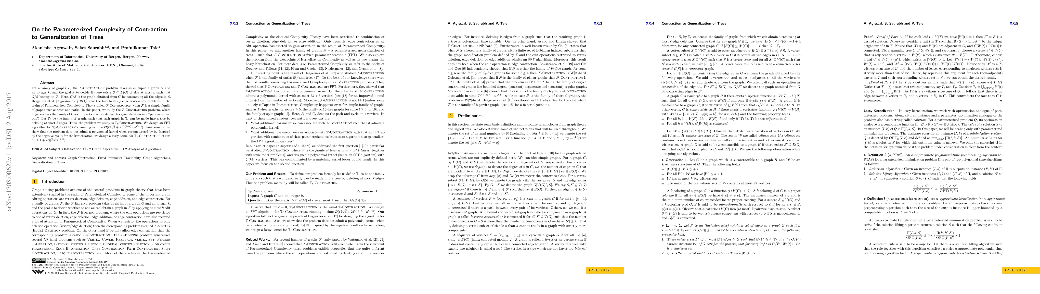 For a family of graphs $\cal F$, the $\mathcal{F}$-Contraction problem takes as an input a graph $G$ and an integer $k$, and the goal is to decide if there exists $S \subseteq E(G)$ of size at most $k$ such that $G/S$ belongs to $\cal F$. Here, $G/S$ is the graph obtained from $G$ by contracting all the edges in $S$. Heggernes et al.~[Algorithmica (2014)] were the first to study edge contraction problems in the realm of Parameterized Complexity. They studied $\cal F$-Contraction when $\cal F$ is a simple family of graphs such as trees and paths. In this paper, we study the $\mathcal{F}$-Contraction problem, where $\cal F$ generalizes the family of trees. In particular, we define this generalization in a "parameterized way". Let $\mathbb{T}_\ell$ be the family of graphs such that each graph in $\mathbb{T}_\ell$ can be made into a tree by deleting at most $\ell$ edges. Thus, the problem we study is $\mathbb{T}_\ell$-Contraction. We design an FPT algorithm for $\mathbb{T}_\ell$-Contraction running in time $\mathcal{O}((2\sqrt(\ell))^{\mathcal{O}(k + \ell)} \cdot n^{\mathcal{O}(1)})$. Furthermore, we show that the problem does not admit a polynomial kernel when parameterized by $k$. Inspired by the negative result for the kernelization, we design a lossy kernel for $\mathbb{T}_\ell$-Contraction of size $ \mathcal{O}([k(k + 2\ell)] ^{(\lceil {\frac{\alpha}{\alpha-1}\rceil + 1)}})$.