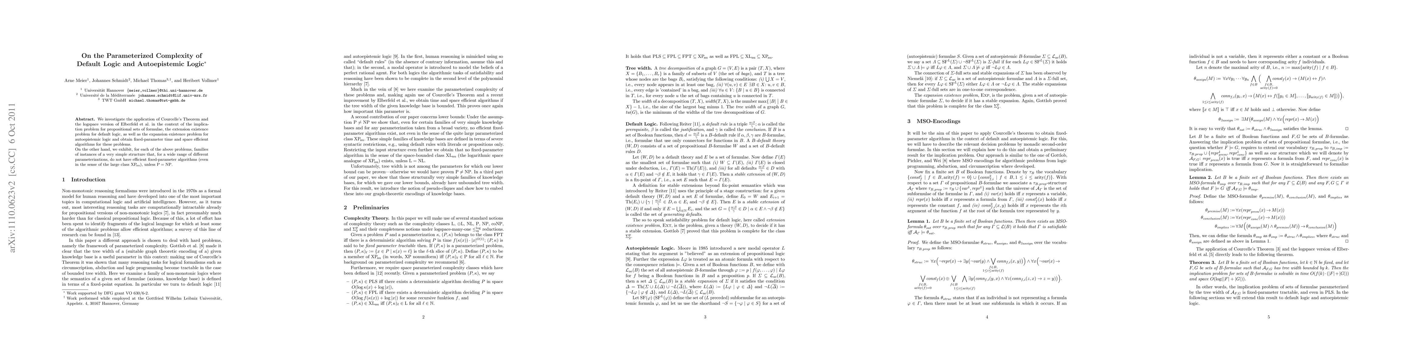 The paper introduces fixed-parameter tractable algorithms for extension existence, implication, and expansion problems in default logic and autoepistemic logic using MSO logic and treewidth as a parameter.