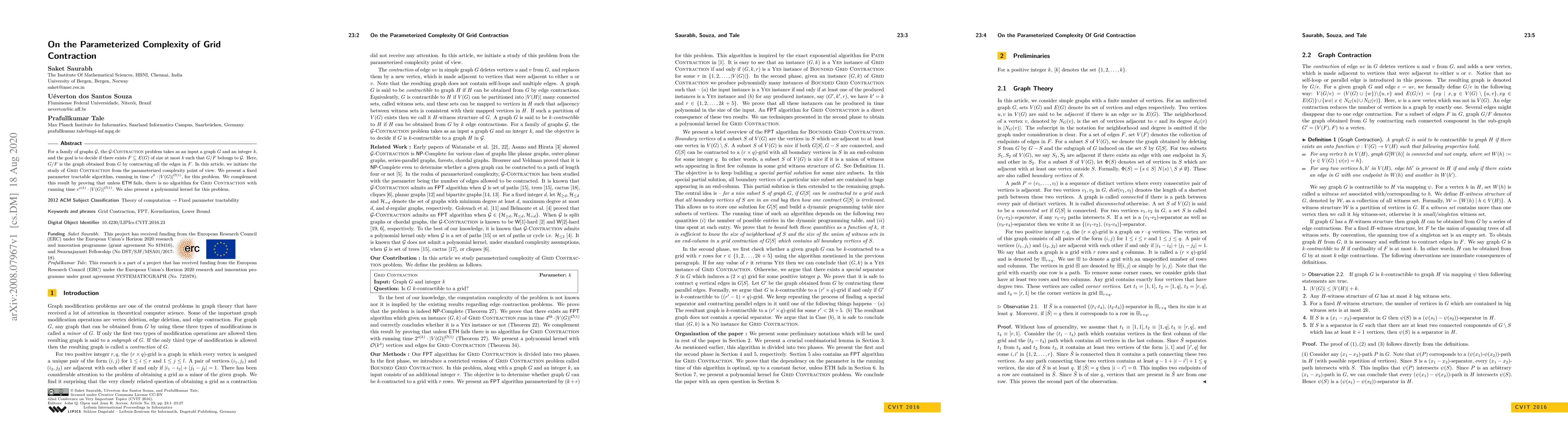 This paper studies the parameterized complexity of the Grid Contraction problem, presenting a fixed parameter tractable algorithm and proving its optimality under the ETH. It also introduces a polynomial kernel for the problem.