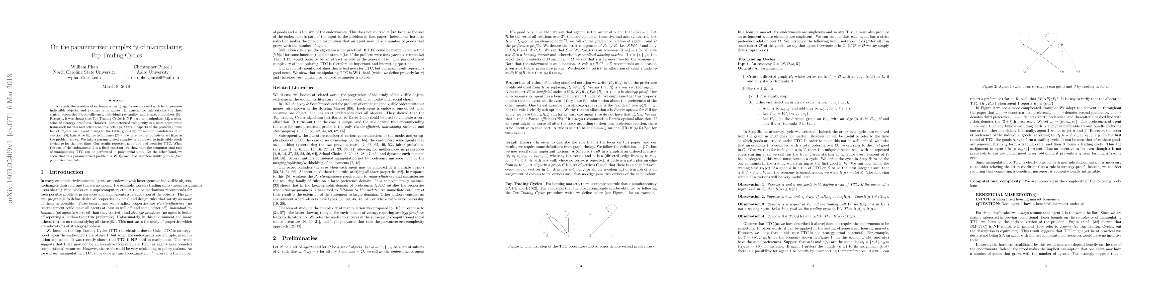 This paper explores the parameterized complexity of manipulating the Top Trading Cycles (TTC) in exchanges involving heterogeneous indivisible objects without money. The authors find that while TTC can be manipulated in polynomial time when the number of objects is a fixed constant, it is $\W[1]$-hard otherwise, indicating it is unlikely to be fixed parameter tractable.