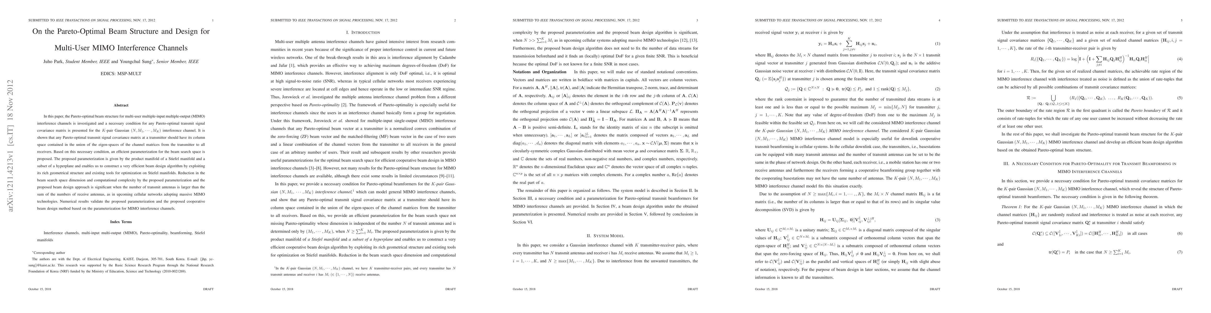 Researchers investigated the optimal beam structure for multi-user MIMO interference channels, finding that a necessary condition involves containing column space in receivers' eigen-spaces; they proposed a parameterization reducing beam search complexity.