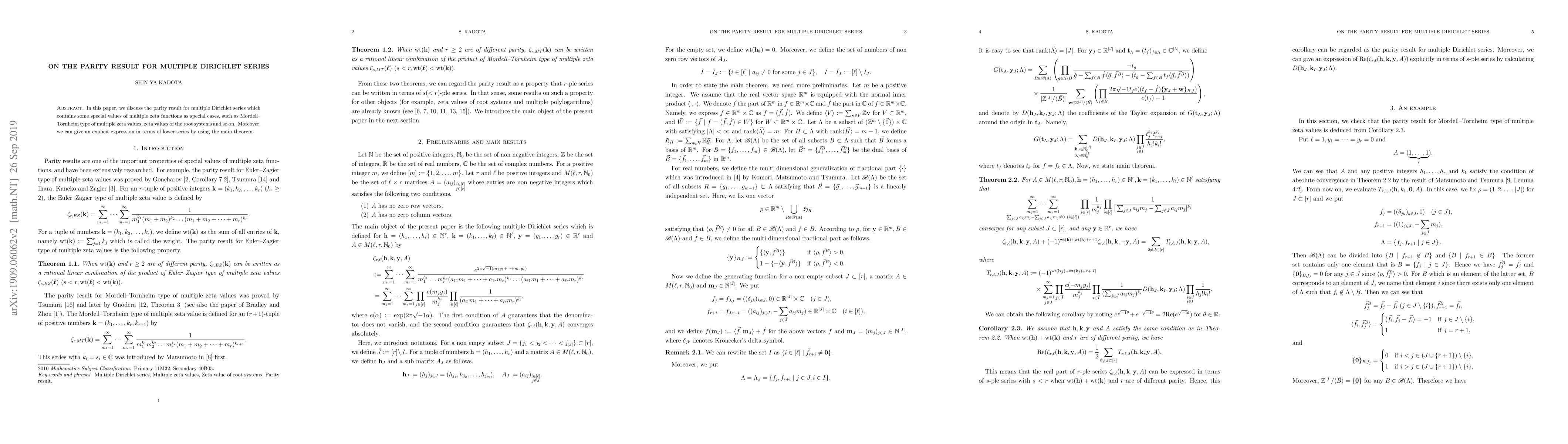 This paper explores the parity result for multiple Dirichlet series, highlighting special values of multiple zeta functions and related values, and provides an explicit expression using a main theorem.