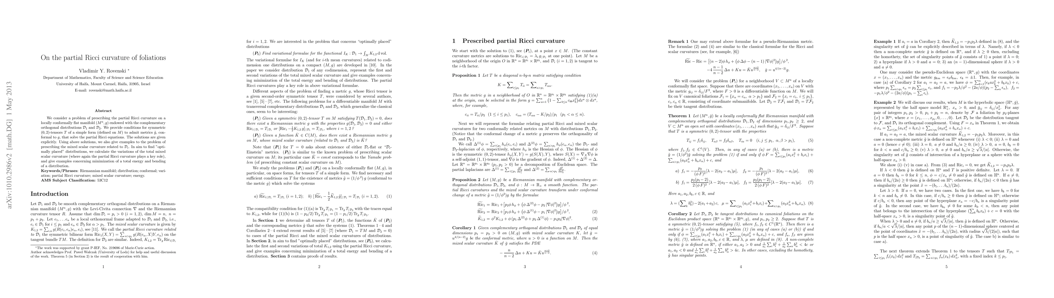 Researchers find conditions for prescribing partial Ricci curvature on a manifold to admit metrics that solve specific equations, with implications for optimizing distribution placements and minimizing total energy.