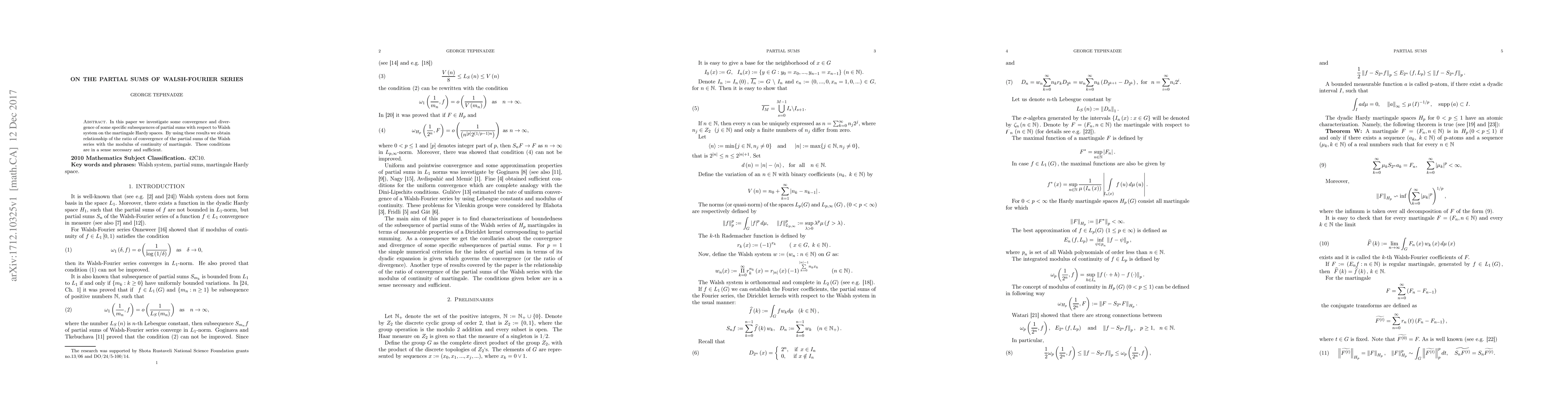 This paper investigates the convergence and divergence of partial sums of Walsh-Fourier series in martingale Hardy spaces, establishing a relationship between convergence rates and modulus of continuity.