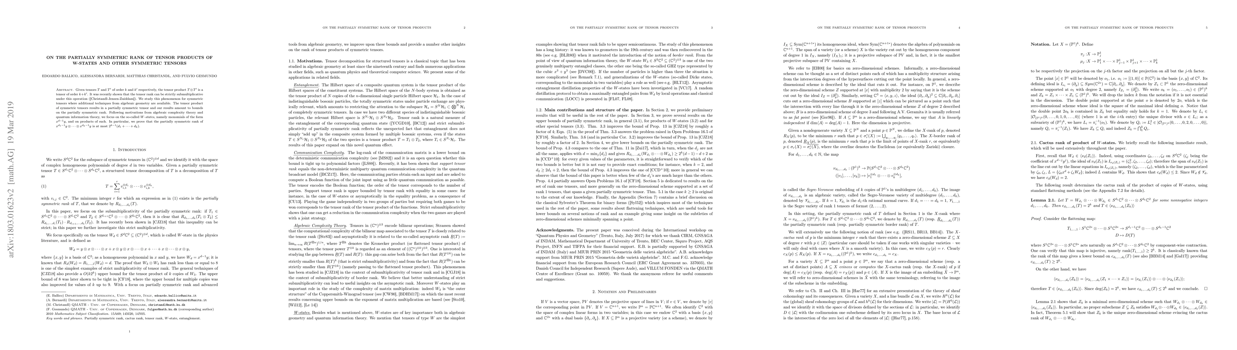 This paper investigates the partially symmetric rank of tensor products of W-states and other symmetric tensors, demonstrating that the tensor rank of such products can be strictly submultiplicative. It establishes an upper bound of $2^{k-1}(d_1 + ... + d_k)$ for the partially symmetric rank of tensor products of W-states.