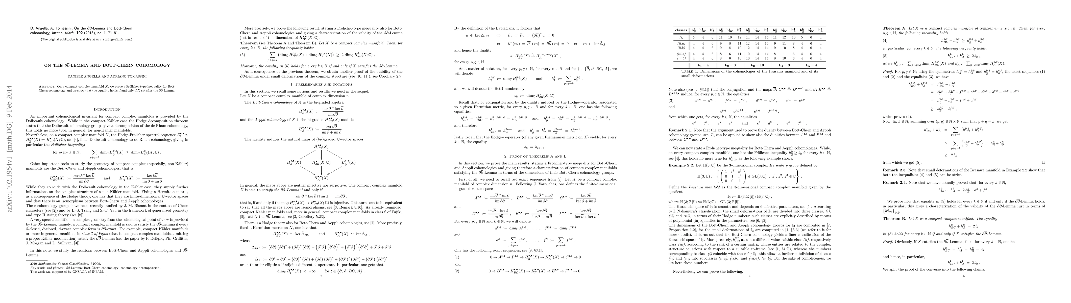 On a compact complex manifold $X$, we prove a Fr\"olicher-type inequality for Bott-Chern cohomology and we show that the equality holds if and only if $X$ satisfies the $\partial\overline{\partial}$-Lemma.