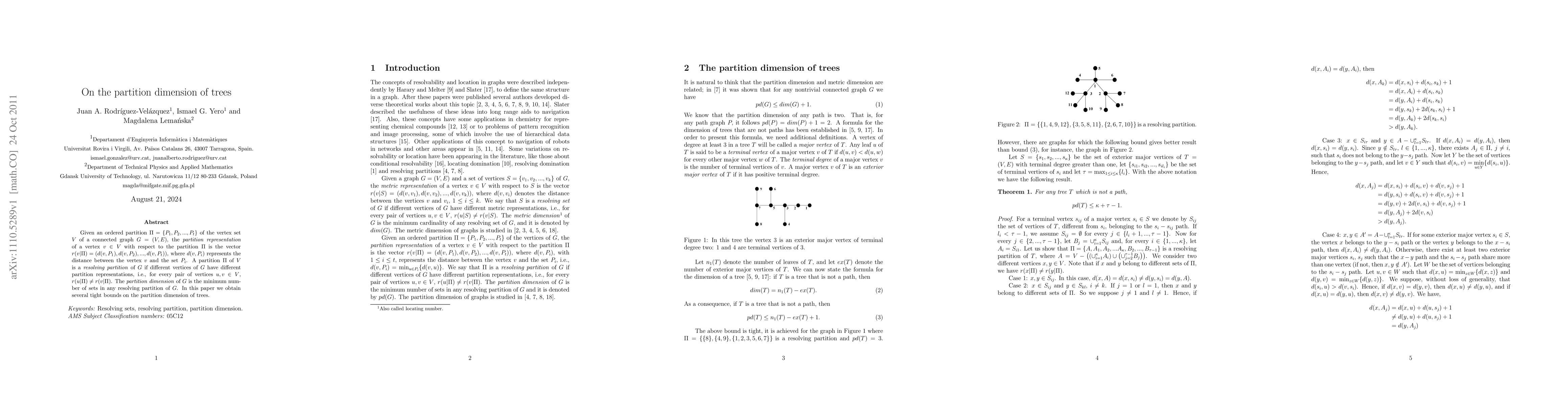 This paper investigates the partition dimension of trees, defining it as the minimum number of sets in a resolving partition where each vertex has a unique representation based on distances to these sets. The authors provide tight bounds for the partition dimension of various tree structures.