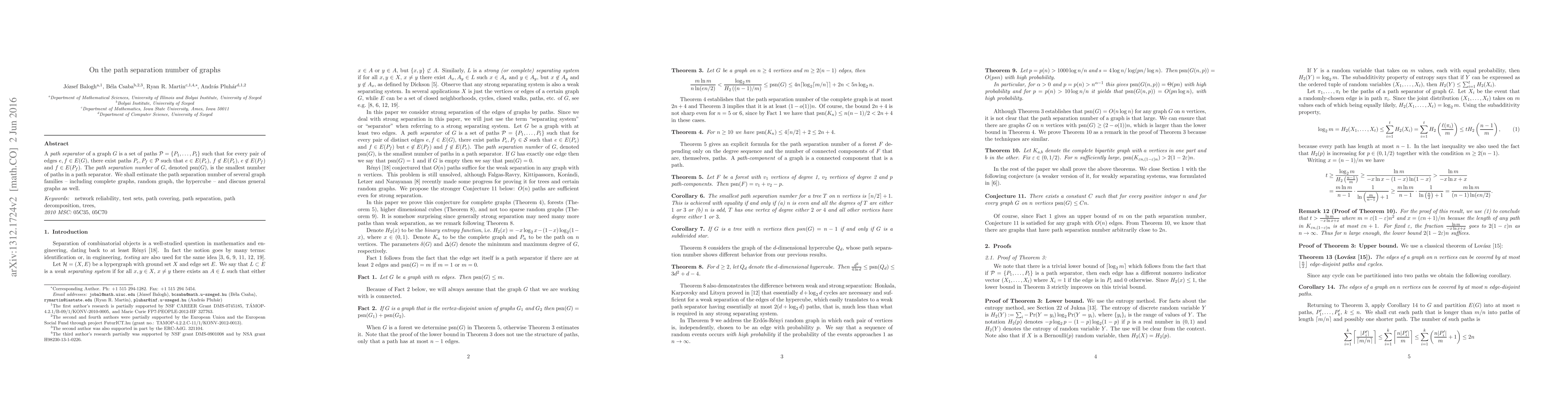 A path separator of a graph $G$ is a set of paths $\mathcal{P}=\{P_1,\ldots,P_t\}$ such that for every pair of edges $e,f\in E(G)$, there exist paths $P_e,P_f\in\mathcal{P}$ such that $e\in E(P_e)$, $f\not\in E(P_e)$, $e\not\in E(P_f)$ and $f\in E(P_f)$. The path separation number of $G$, denoted ${\rm psn}(G)$, is the smallest number of paths in a path separator. We shall estimate the path separation number of several graph families, including complete graphs, random graph, the hypercube, and discuss general graphs as well.