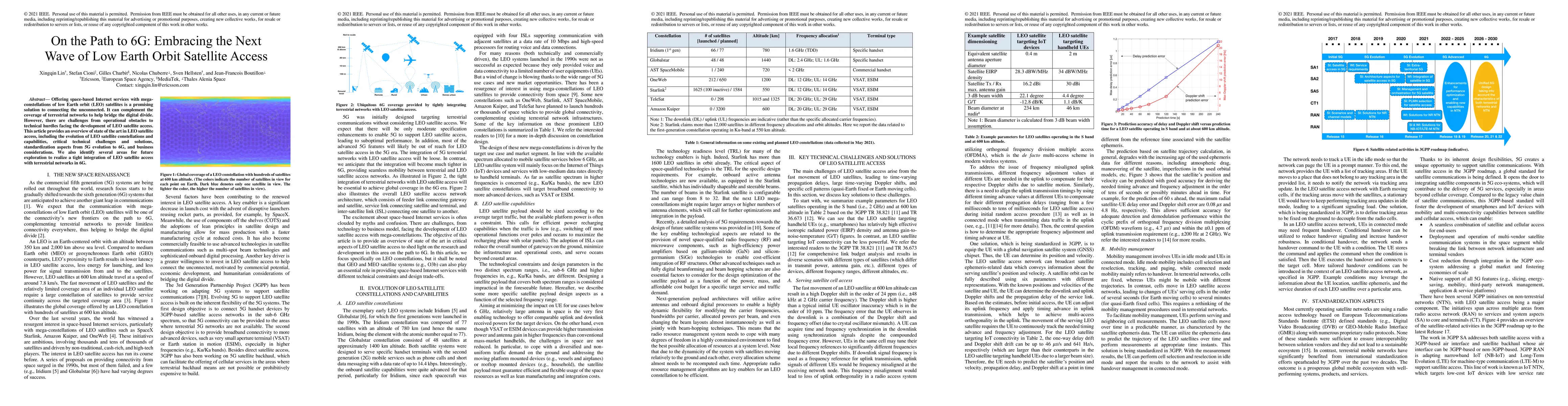 This paper reviews the current state and challenges in deploying low Earth orbit (LEO) satellite constellations for space-based Internet services, highlighting technical hurdles and standardization efforts from 5G to 6G, and suggests areas for future research to integrate LEO satellite access with terrestrial networks. Future explorations aim to bridge the digital divide and enhance global connectivity.