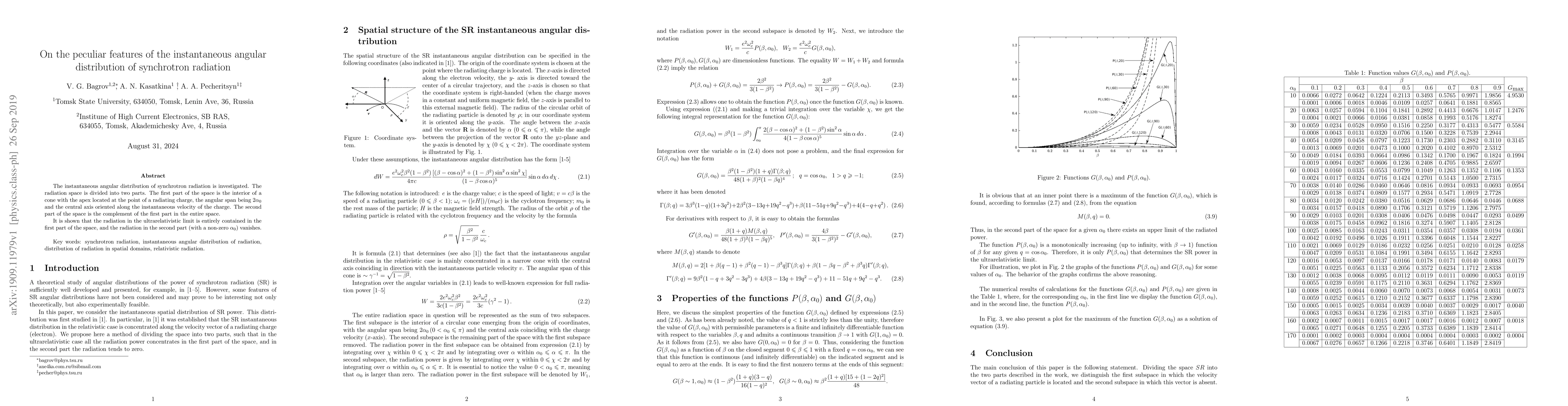 The instantaneous angular distribution of synchrotron radiation is investigated. The radiation space is divided into two parts. The first part of the space is the interior of a cone with the apex located at the point of a radiating charge, the angular span being $2\alpha_0$ and the central axis oriented along the instantaneous velocity of the charge. The second part of the space is the complement of the first part in the entire space. It is shown that the radiation in the ultrarelativistic limit is entirely contained in the first part of the space, and the radiation in the second part (with a non-zero $\alpha_0$) vanishes.