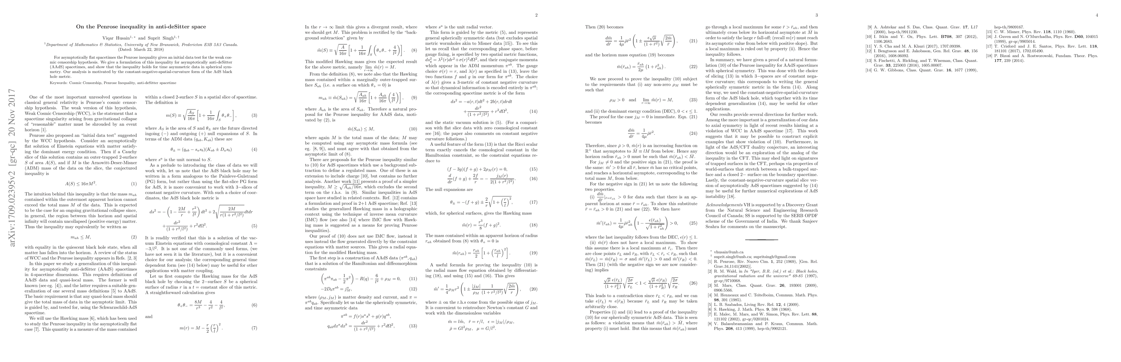 The Penrose inequality is reformulated for asymptotically anti-deSitter (AAdS) spacetimes, demonstrating its validity for time asymmetric data in spherical symmetry, motivated by the constant-negative-spatial-curvature AdS black hole metric. This work supports the weak cosmic censorship hypothesis in the context of AAdS spacetimes.