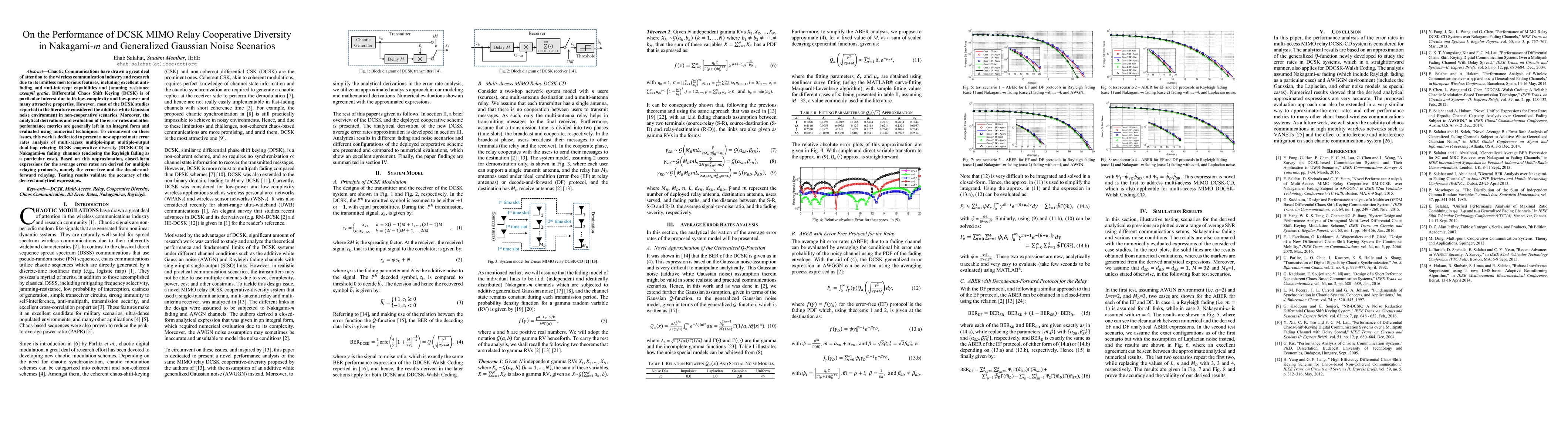 This paper presents an approximate error rate analysis for DCSK-based MIMO relay cooperative systems in Nakagami-m fading channels, addressing non-Gaussian noise scenarios. It derives closed-form expressions for average error rates in multiple relaying protocols, validated by testing results.