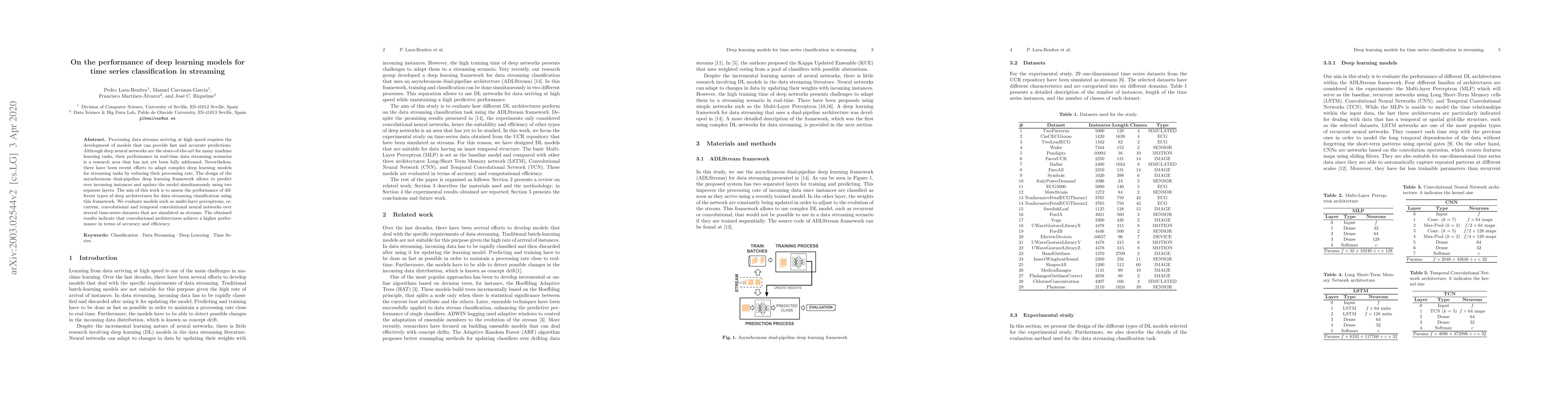 This research evaluates deep learning models' performance for real-time time-series classification in data streams using an asynchronous dual-pipeline framework. Convolutional architectures are found to outperform other models like MLPs, RNNs, and temporal CNNs in terms of accuracy and efficiency.