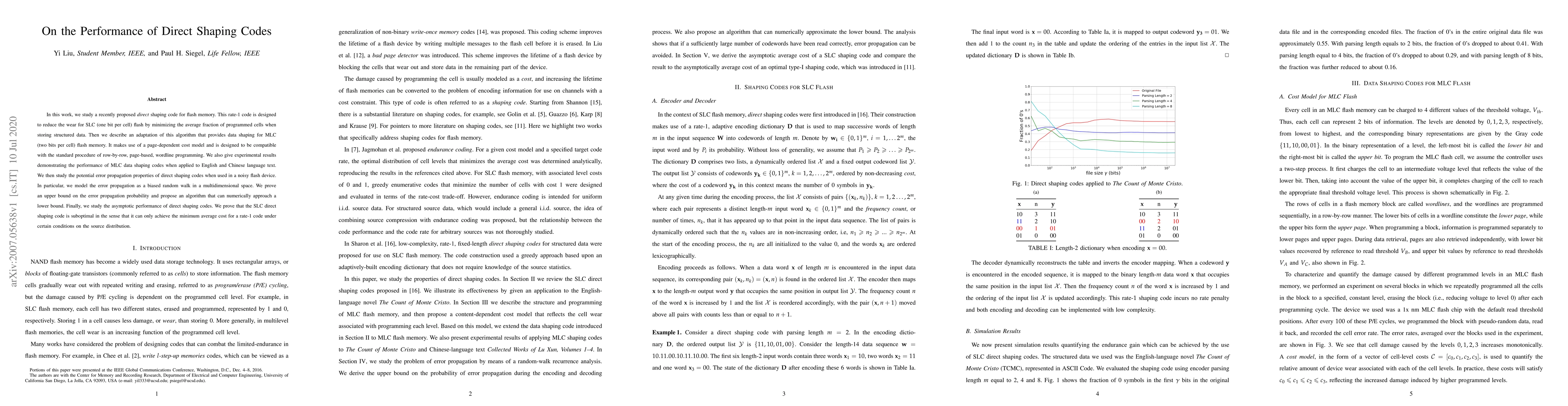 In this work, we study a recently proposed direct shaping code for flash memory. This rate-1 code is designed to reduce the wear for SLC (one bit per cell) flash by minimizing the average fraction of programmed cells when storing structured data. Then we describe an adaptation of this algorithm that provides data shaping for MLC (two bits per cell) flash memory. It makes use of a page-dependent cost model and is designed to be compatible with the standard procedure of row-by-row, page-based, wordline programming. We also give experimental results demonstrating the performance of MLC data shaping codes when applied to English and Chinese language text. We then study the potential error propagation properties of direct shaping codes when used in a noisy flash device. In particular, we model the error propagation as a biased random walk in a multidimensional space. We prove an upper bound on the error propagation probability and propose an algorithm that can numerically approach a lower bound. Finally, we study the asymptotic performance of direct shaping codes. We prove that the SLC direct shaping code is suboptimal in the sense that it can only achieve the minimum average cost for a rate-1 code under certain conditions on the source distribution.
