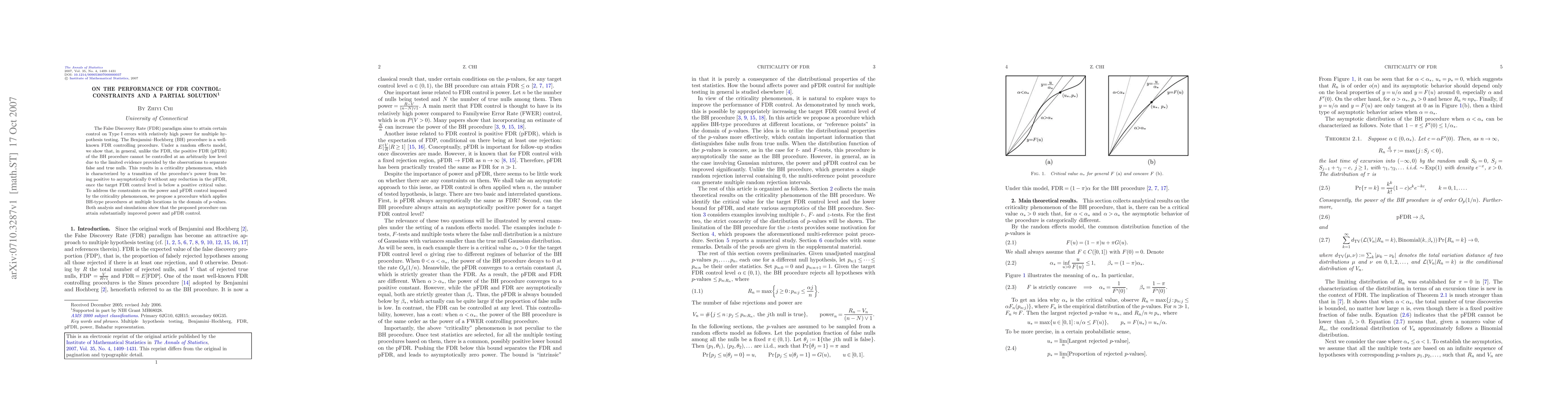 This paper discusses the limitations of the Benjamini-Hochberg procedure in controlling the False Discovery Rate (FDR) under a random effects model, revealing a criticality phenomenon. It proposes a new procedure that applies BH-type methods at multiple $p$-value locations to achieve better power and pFDR control, as demonstrated through analysis and simulations.