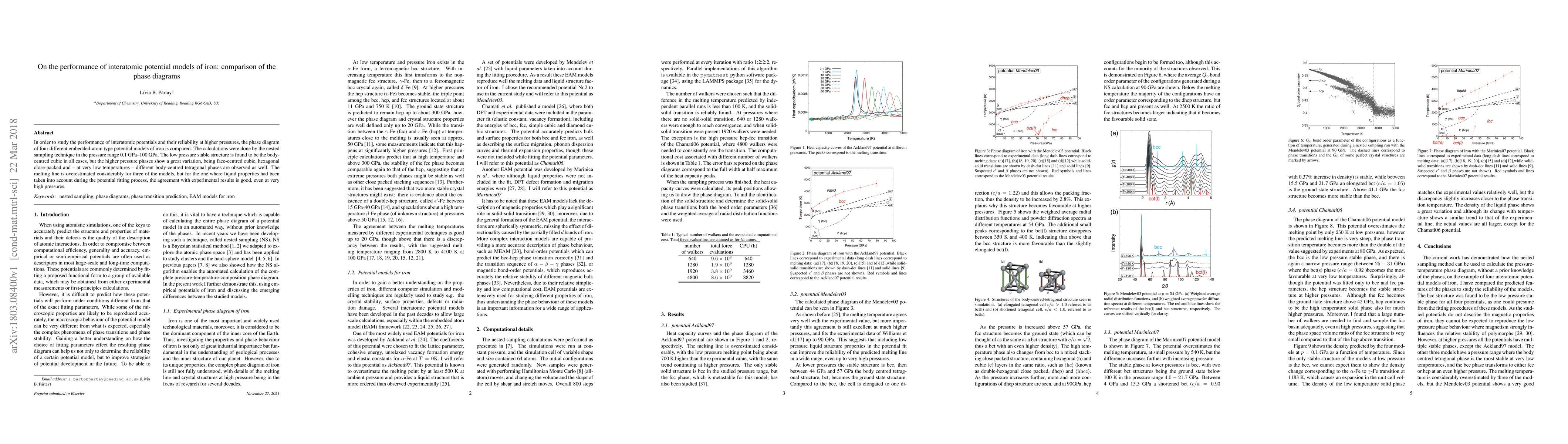 In order to study the performance of interatomic potentials and their reliability at higher pressures, the phase diagram of four different embedded-atom type potential models of iron is compared. The calculations were done by the nested sampling technique in the pressure range 0.1 GPa-100 GPa. The low pressure stable structure is found to be the body- centred cubic in all cases, but the higher pressure phases show a great variation, being face-centred cubic, hexagonal close-packed and - at very low temperatures - different body-centred tetragonal phases are observed as well. The melting line is overestimated considerably for three of the models, but for the one where liquid properties had been taken into account during the potential fitting process, the agreement with experimental results is good, even at very high pressures.