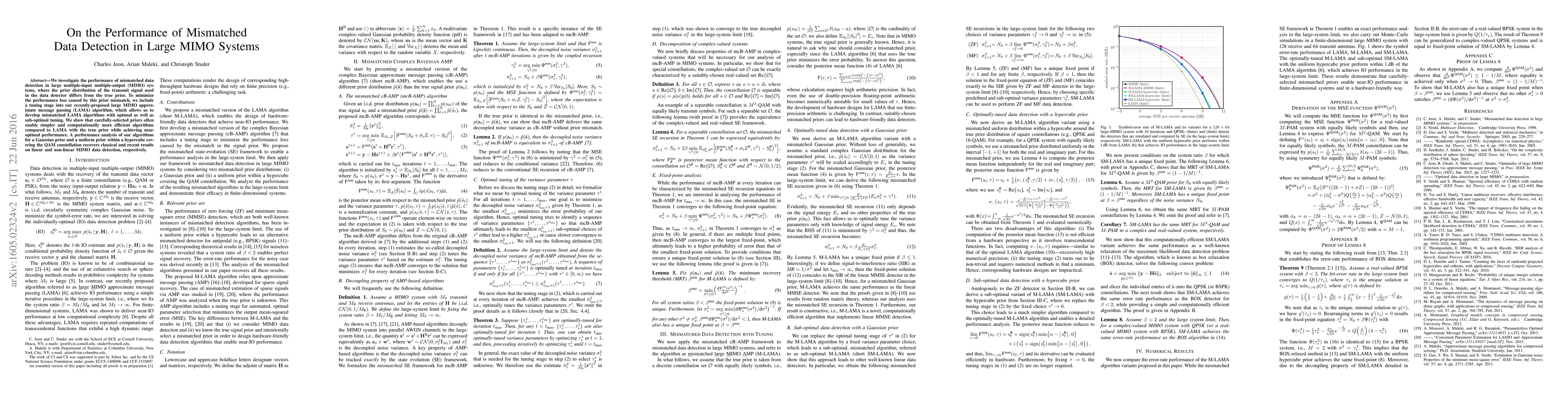 This paper examines the performance of mismatched data detection in large MIMO systems, proposing tuned versions of the LAMA algorithm to minimize performance loss due to prior mismatch. The study finds that simpler, computationally efficient algorithms with carefully chosen priors can achieve near-optimal performance, validating these findings with classical and recent results on linear and non-linear MIMO detection.