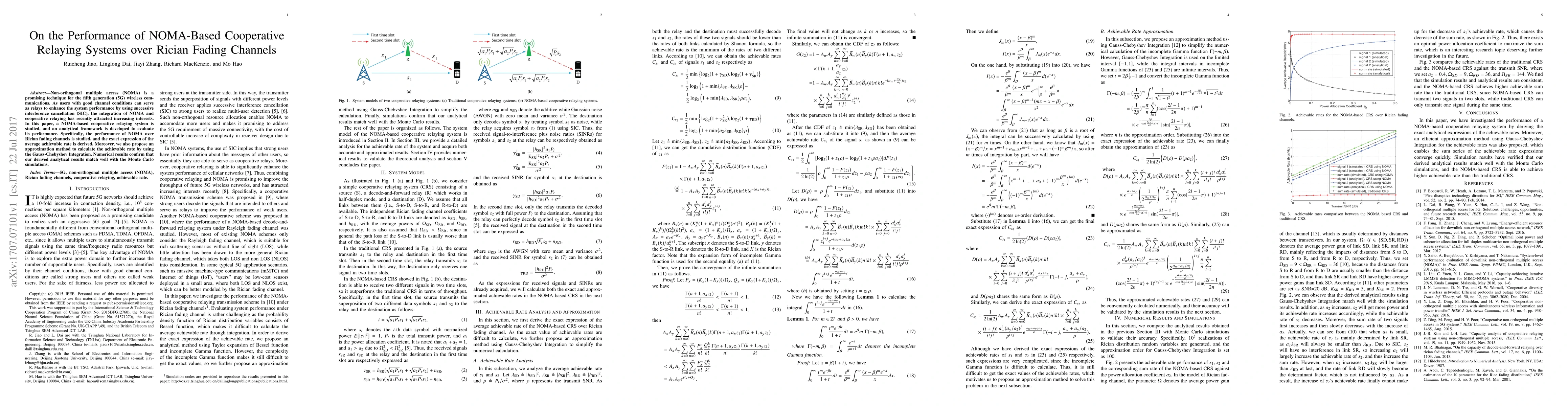 This paper develops an analytical framework for evaluating the performance of NOMA-based cooperative relaying systems over Rician fading channels, deriving an exact expression for the average achievable rate and proposing an approximation method using Gauss-Chebyshev Integration. Numerical results validate the accuracy of the derived analytical results.