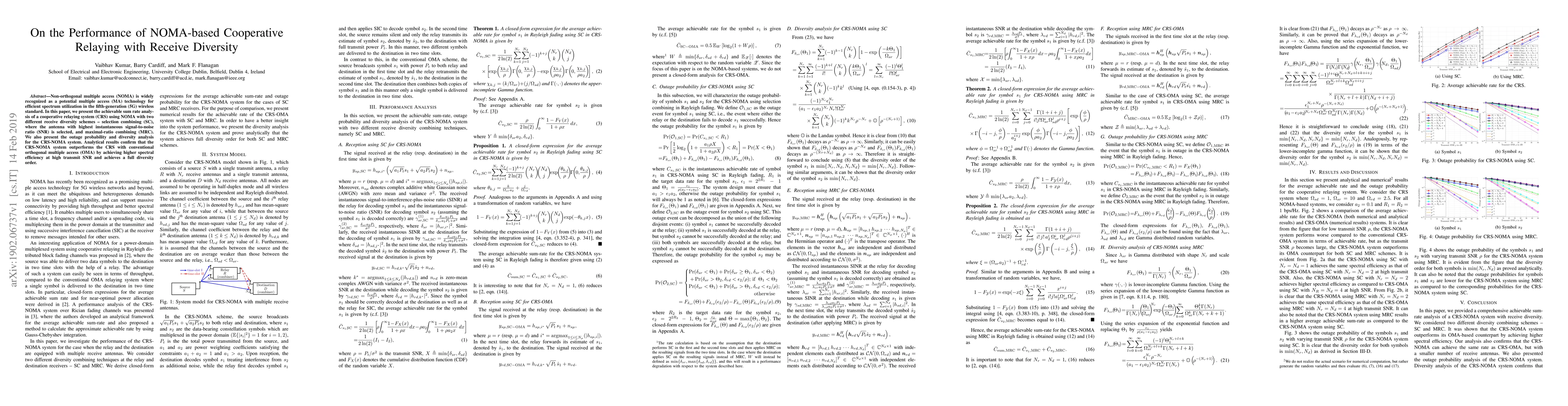 This paper analyzes the performance of a cooperative relaying system using NOMA with selection combining and maximal-ratio combining. It demonstrates that NOMA-based CRS achieves higher spectral efficiency and full diversity compared to conventional orthogonal multiple access, especially at high transmit SNR.