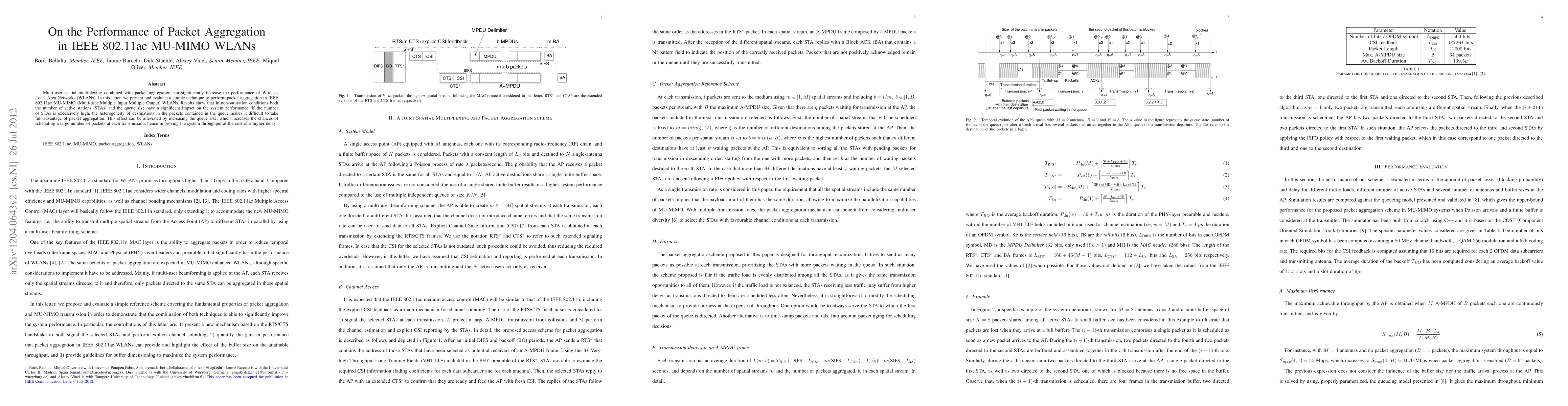 This paper evaluates a technique for packet aggregation in IEEE 802.11ac MU-MIMO WLANs, finding that performance is significantly influenced by the number of active stations and queue size. Increasing the queue size can improve throughput by scheduling more packets per transmission but at the expense of higher delay.