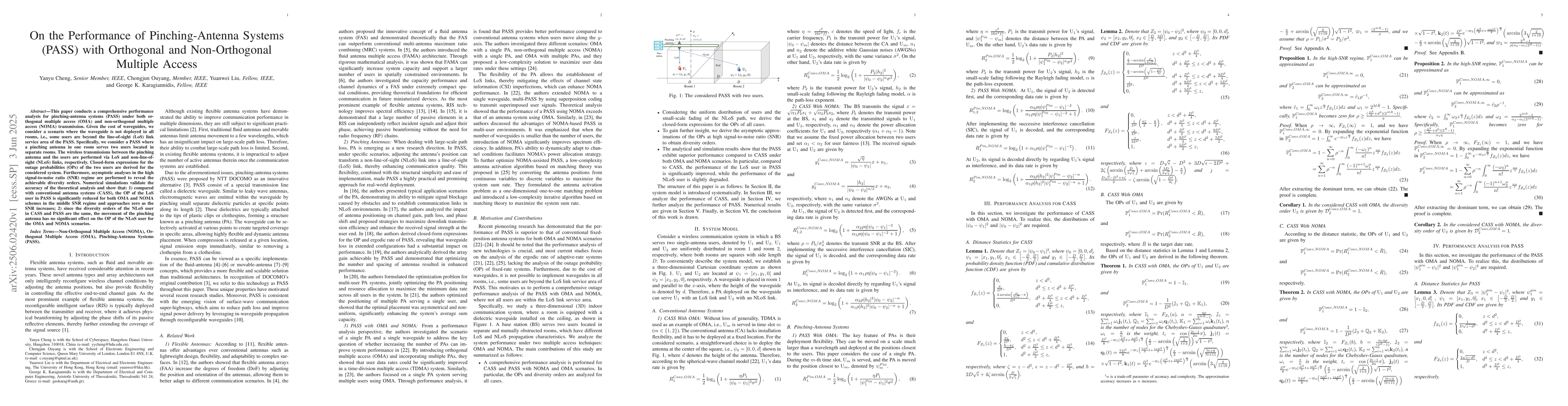 The paper presents closed-form expressions for outage probabilities of users in PASS under OMA and NOMA, along with asymptotic analyses in high SNR regime, providing a theoretical foundation for understanding PASS performance.