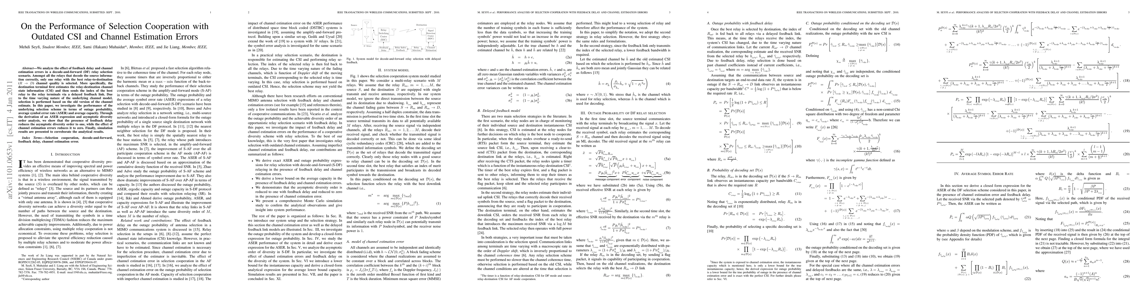 This paper examines the performance of selection cooperation in relay networks with imperfect channel estimation, deriving bounds and expressions for effective SNR, average symbol error rate, outage probability, and average capacity under frequency flat fading. Simulation results validate the analytical findings.