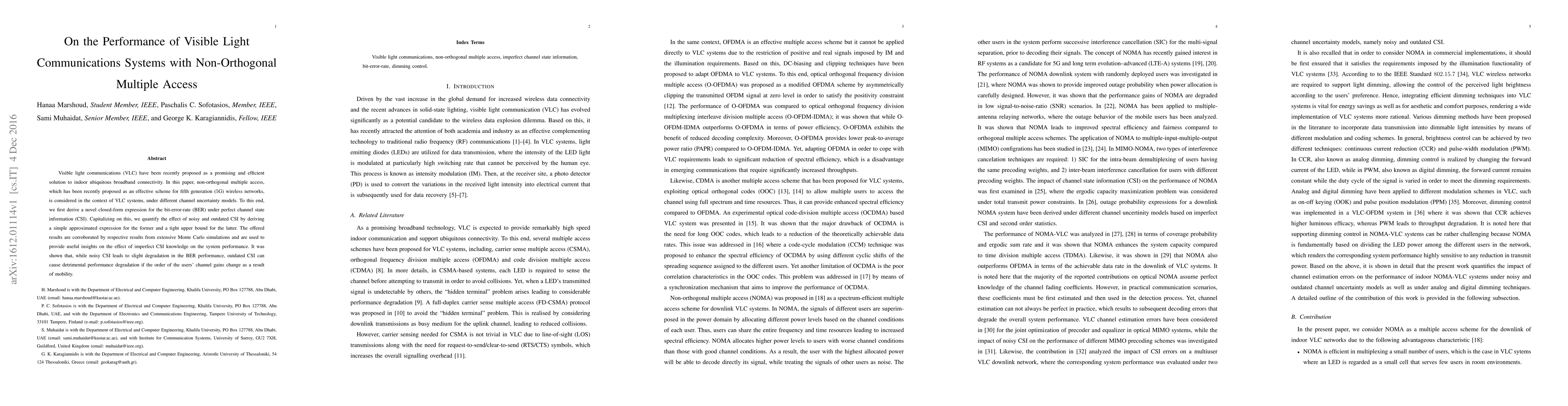 Visible light communications (VLC) have been recently proposed as a promising and efficient solution to indoor ubiquitous broadband connectivity. In this paper, non-orthogonal multiple access, which has been recently proposed as an effective scheme for fifth generation (5G) wireless networks, is considered in the context of VLC systems, under different channel uncertainty models. To this end, we first derive a novel closed-form expression for the bit-error-rate (BER) under perfect channel state information (CSI). Capitalizing on this, we quantify the effect of noisy and outdated CSI by deriving a simple approximated expression for the former and a tight upper bound for the latter. The offered results are corroborated by respective results from extensive Monte Carlo simulations and are used to provide useful insights on the effect of imperfect CSI knowledge on the system performance. It was shown that, while noisy CSI leads to slight degradation in the BER performance, outdated CSI can cause detrimental performance degradation if the order of the users' channel gains change as a result of mobility