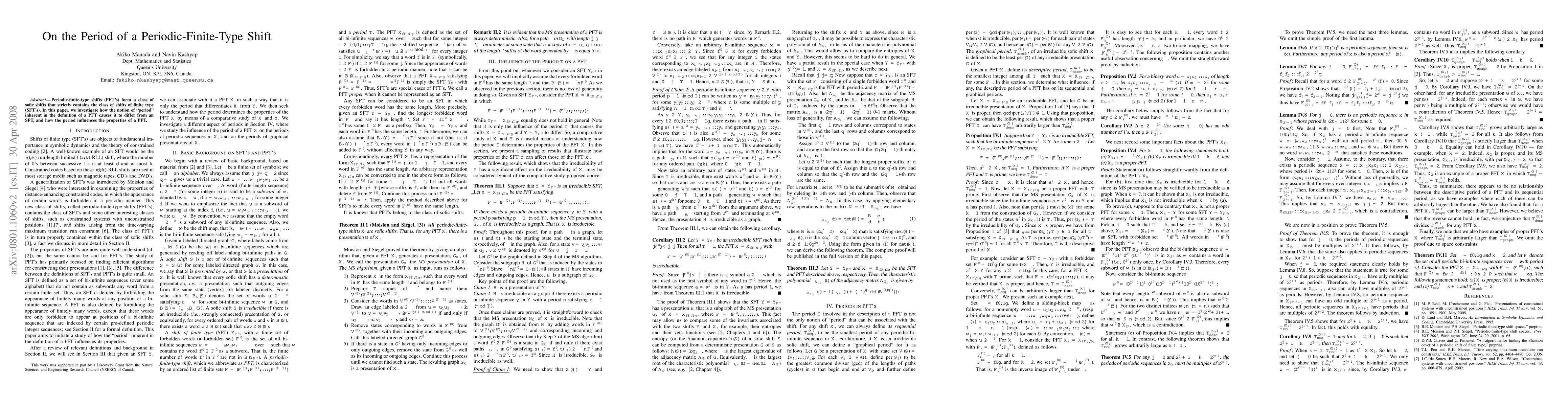 Periodic-finite-type shifts (PFT's) form a class of sofic shifts that strictly contains the class of shifts of finite type (SFT's). In this paper, we investigate how the notion of "period" inherent in the definition of a PFT causes it to differ from an SFT, and how the period influences the properties of a PFT.