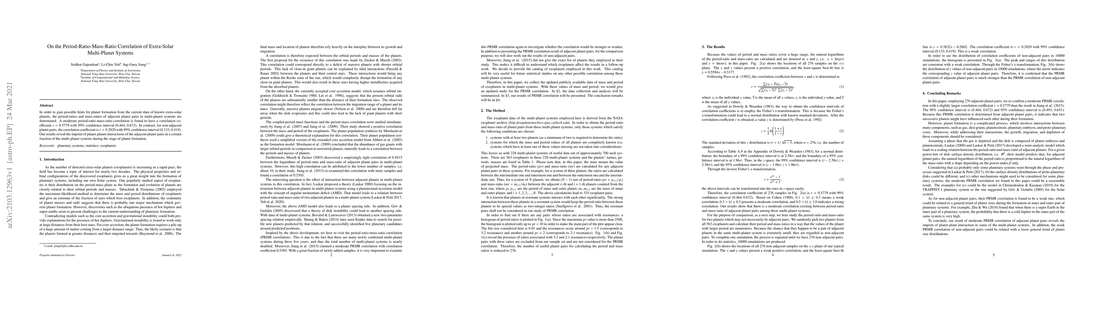 This study investigates the period-ratio-mass-ratio correlation in multi-planet systems, finding a moderate correlation (r=0.5779) for adjacent planet pairs, suggesting significant planet-planet interactions during formation, while non-adjacent pairs show a weaker correlation (r=0.2820).