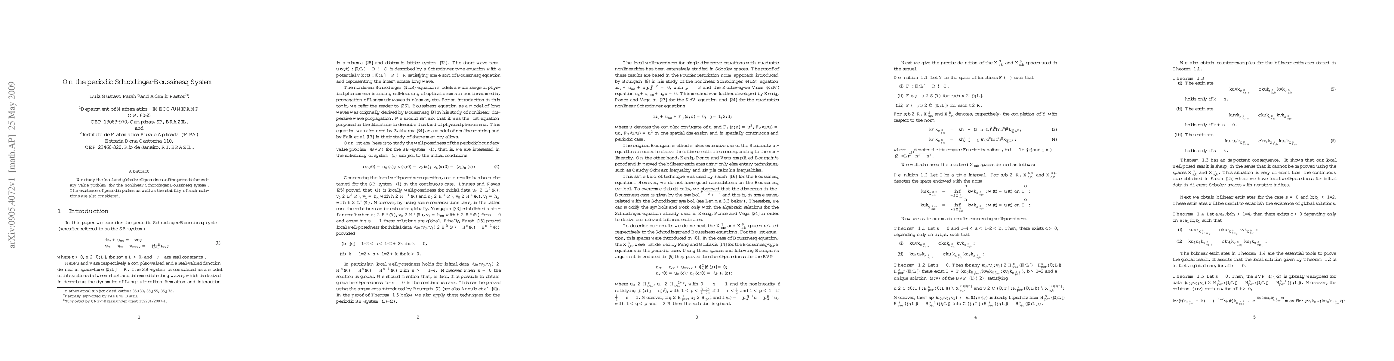 We study the local and global well-posedness of the periodic boundary value problem for the nonlinear Schr\"odinger-Boussinesq system. The existence of periodic pulses as well as the stability of such solutions are also considered.