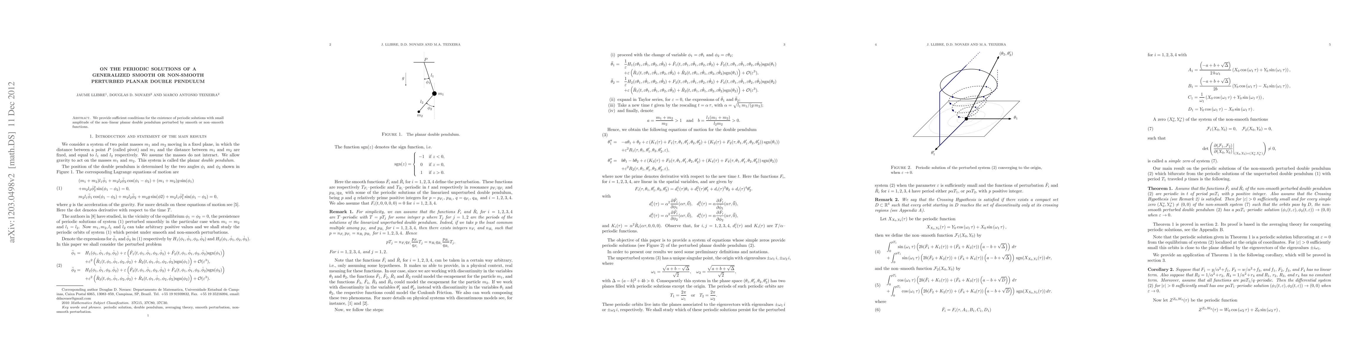 Summary: This paper establishes sufficient conditions for the existence of small-amplitude periodic solutions in a perturbed planar double pendulum system, considering both smooth and non-smooth perturbations. The focus is on the nonlinear dynamics of the system.
