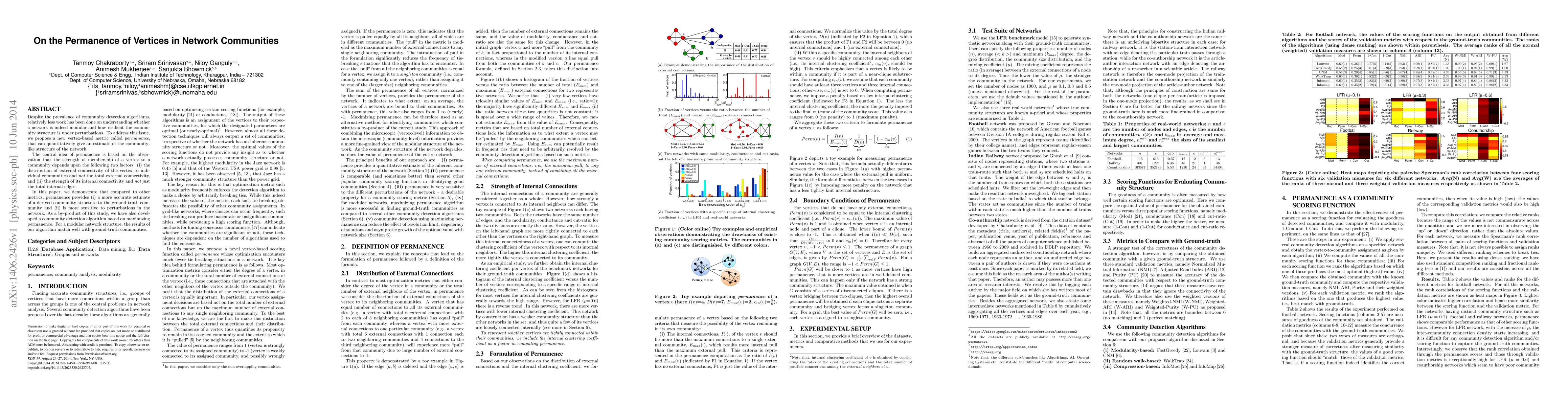 This paper introduces a new vertex-based metric called "permanence" to assess the stability of community structures in networks, showing it provides a more accurate and perturbation-sensitive estimate compared to existing metrics. Additionally, a community detection algorithm based on maximizing permanence is developed, which aligns well with ground-truth communities in modular networks.