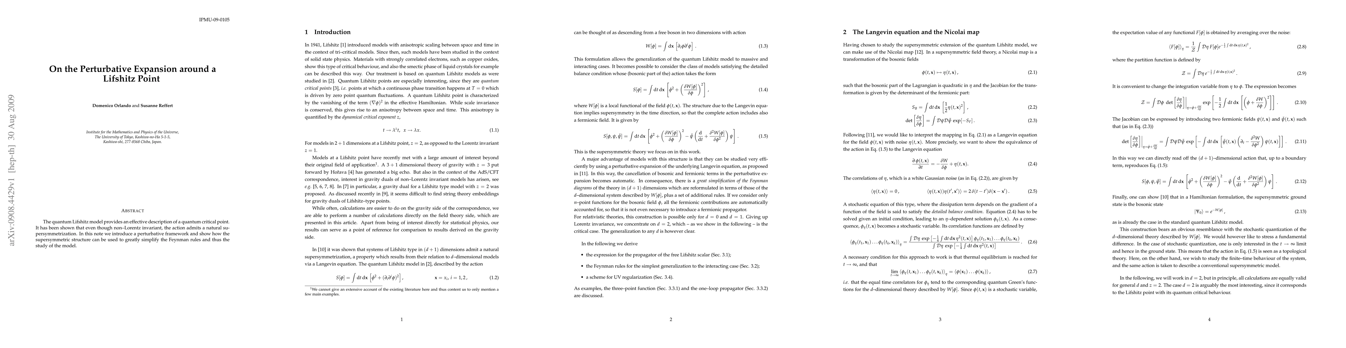 The quantum Lifshitz model provides an effective description of a quantum critical point. It has been shown that even though non--Lorentz invariant, the action admits a natural supersymmetrization. In this note we introduce a perturbative framework and show how the supersymmetric structure can be used to greatly simplify the Feynman rules and thus the study of the model.