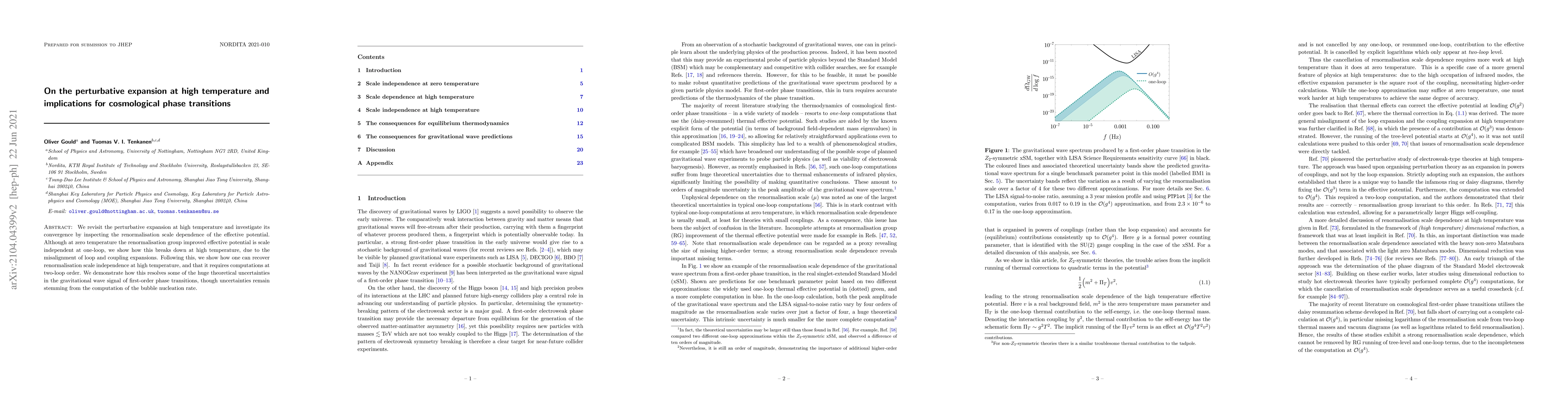 The paper presents a detailed analysis of the perturbative expansion at high temperature, showing how two-loop computations can restore renormalization scale independence, which is crucial for accurate predictions of cosmological phase transitions.