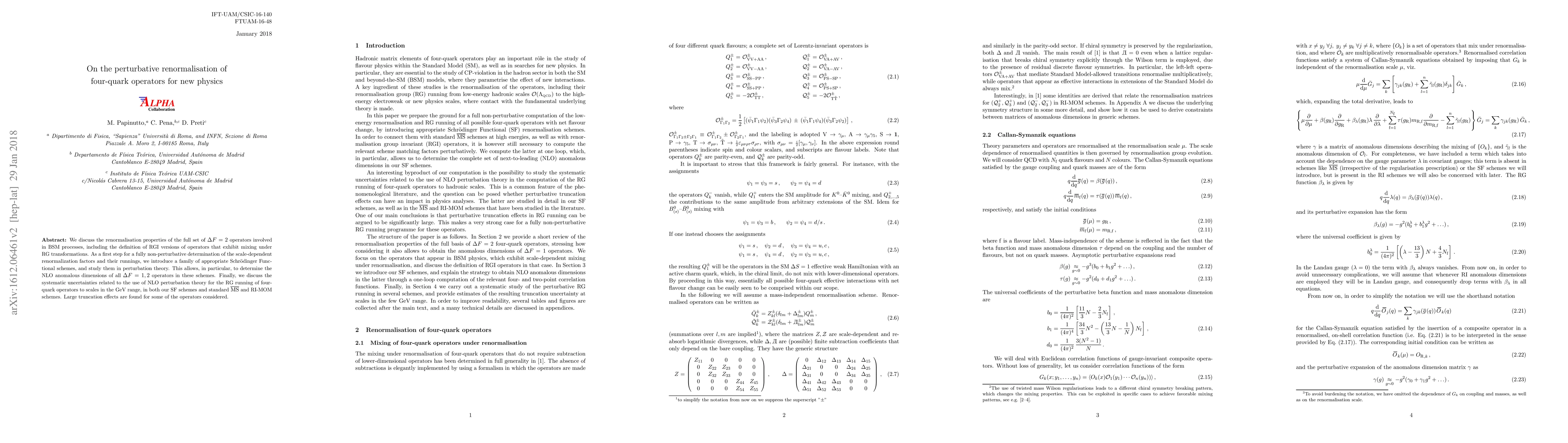 This research explores the renormalization of four-quark operators in the context of new physics, defining RGI versions of operators that mix under RG transformations. Perturbation theory is applied in Schrödinger Functional schemes to determine NLO anomalous dimensions of all ΔF=1,2 operators. The study also examines systematic uncertainties in using NLO perturbation theory for RG running of these operators to GeV scales, revealing substantial truncation effects for certain operators.