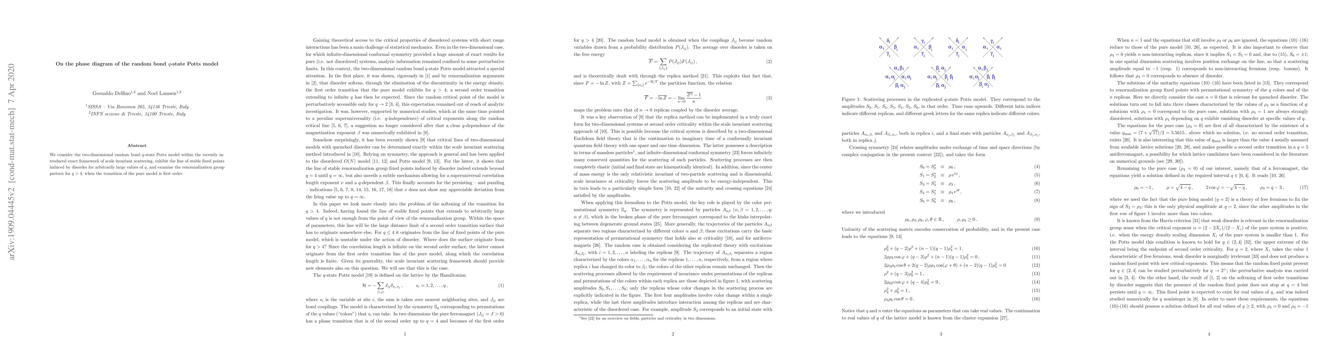 This paper explores the phase diagram of the two-dimensional random bond $q$-state Potts model using scale invariant scattering, revealing a line of stable fixed points due to disorder for large $q$ values, and analyzes the renormalization group behavior for $q>4$ where the pure model exhibits a first-order transition.