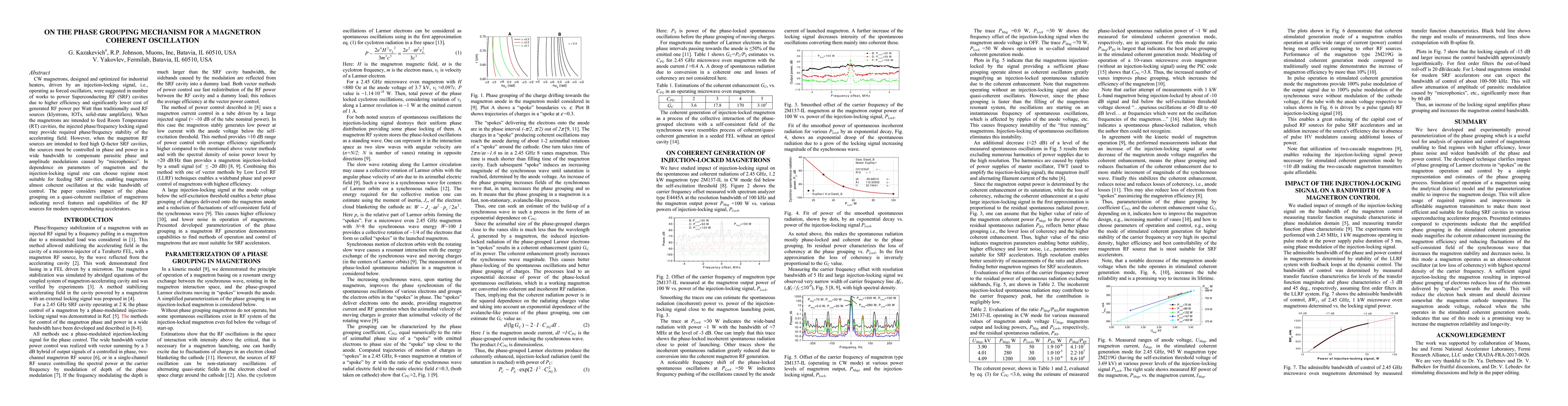 This paper explores the phase grouping mechanism for magnetron coherent oscillation to power Superconducting RF cavities, highlighting the efficiency and cost advantages over traditional RF sources. It proposes a novel approach to control magnetrons for optimal phase and power coherence, addressing parasitic modulations and enabling effective feeding of high Q-factor SRF cavities.