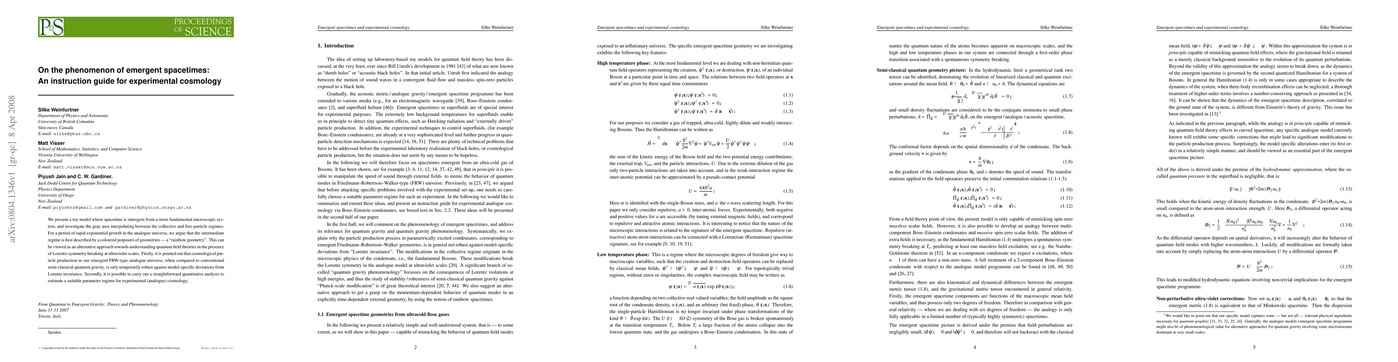 We present a toy model where spacetime is emergent from a more fundamental microscopic system, and investigate the gray area interpolating between the collective and free-particle regimes. For a period of rapid exponential growth in the analogue universe, we argue that the intermediate regime is best described by a coloured potpourri of geometries -- a "rainbow geometry". This can be viewed as an alternative approach towards understanding quantum field theories in the presence of Lorentz-symmetry breaking at ultraviolet scales. Firstly, it is pointed out that cosmological particle production in our emergent FRW-type analogue universe, when compared to conventional semi-classical quantum gravity, is only temporarily robust against model-specific deviations from Lorentz invariance. Secondly, it is possible to carry out a straightforward quantitative analysis to estimate a suitable parameter regime for experimental (analogue) cosmology.