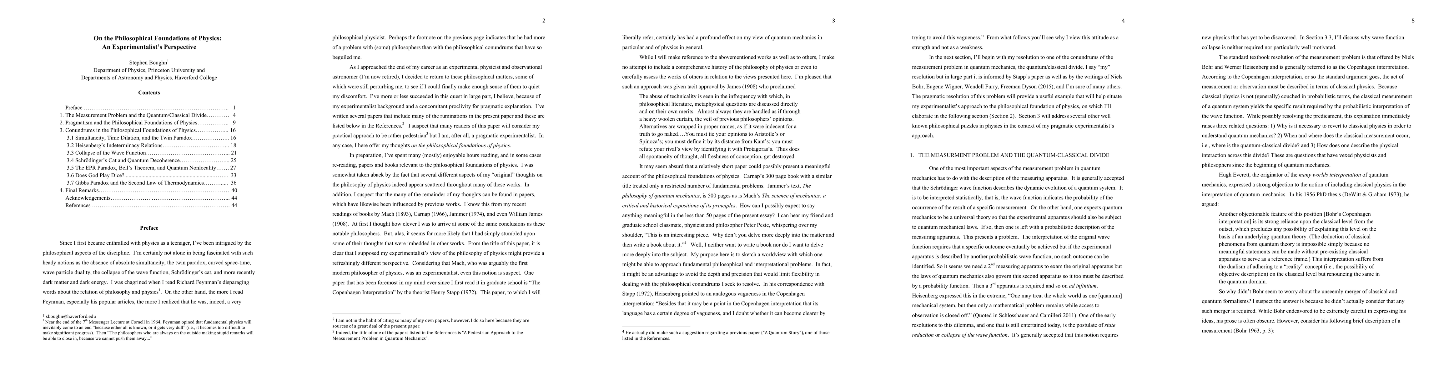 Since I first became enthralled with physics as a teenager, I've been intrigued by the philosophical aspects of the discipline. As I approached the end of my career as an experimental physicist and observational astronomer (I'm now retired), I decided to return to these philosophical matters, some of which were still perturbing me, to see if I could finally make enough sense of them to quiet my discomfort. I've more or less succeeded in this quest in large part, I believe, because of my experimentalist background and a concomitant proclivity for pragmatic explanation. My purpose in this essay is to sketch a pragmatic worldview with which one might be able to approach fundamental philosophical and interpretational problems. You might ask how I can possibly expect to say anything meaningful in the less than 50 pages of the present essay? On the other hand, it might be an advantage to avoid the depth and precision that would limit flexibility in dealing with the philosophical conundrums I seek to resolve. In any case, I here offer my thoughts on the philosophical foundations of physics.