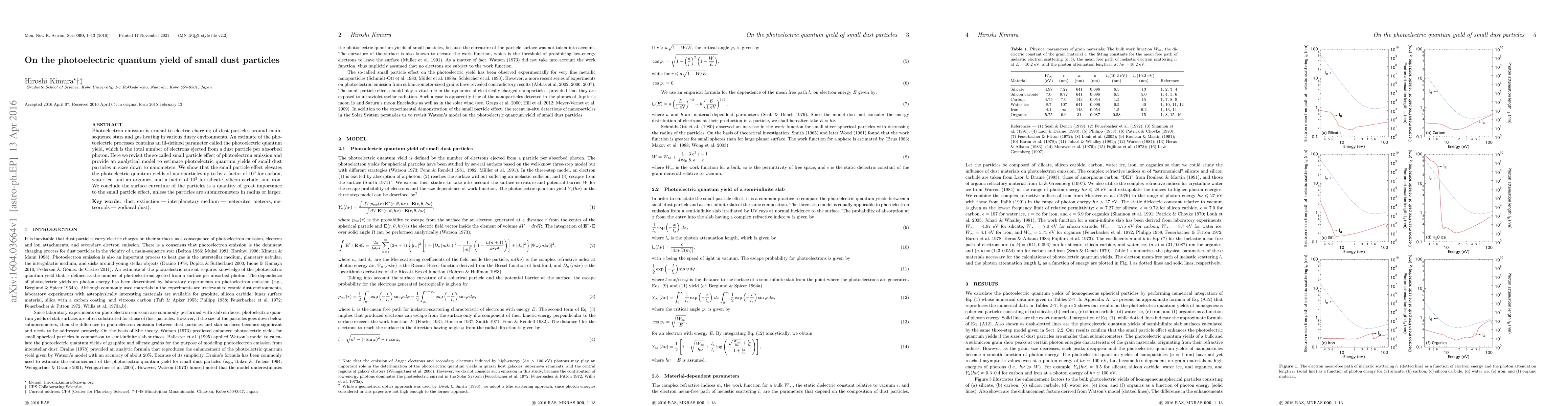 Photoelectron emission is crucial to electric charging of dust particles around main-sequence stars and gas heating in various dusty environments. An estimate of the photoelectric processes contains an ill-defined parameter called the photoelectric quantum yield, which is the total number of electrons ejected from a dust particle per absorbed photon. Here we revisit the so-called small particle effect of photoelectron emission and provide an analytical model to estimate photoelectric quantum yields of small dust particles in sizes down to nanometers. We show that the small particle effect elevates the photoelectric quantum yields of nanoparticles up to by a factor of $10^3$ for carbon, water ice, and organics, and a factor of $10^2$ for silicate, silicon carbide, and iron. We conclude the surface curvature of the particles is a quantity of great importance to the small particle effect, unless the particles are submicrometers in radius or larger.