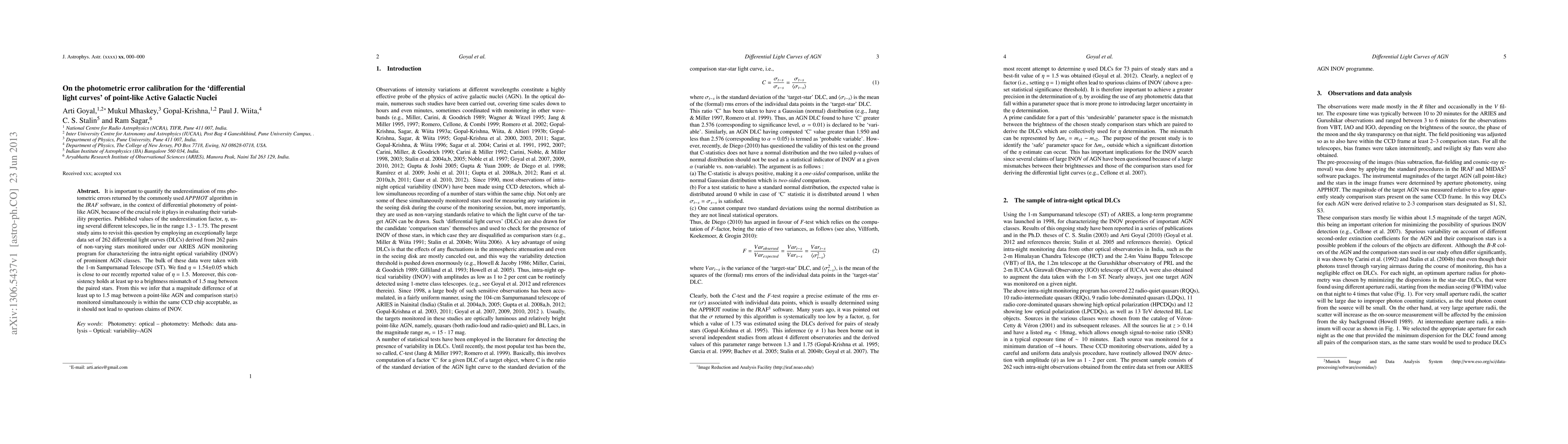 It is important to quantify the underestimation of rms photometric errors returned by the commonly used $\emph APPHOT$ algorithm in the $\emph IRAF$ software, in the context of differential photometry of point-like AGN, because of the crucial role it plays in evaluating their variability properties. Published values of the underestimation factor, $\eta$, using several different telescopes, lie in the range 1.3 - 1.75. The present study aims to revisit this question by employing an exceptionally large data set of 262 differential light curves (DLCs) derived from 262 pairs of non-varying stars monitored under our ARIES AGN monitoring program for characterizing the intra-night optical variability (INOV) of prominent AGN classes. The bulk of these data were taken with the 1-m Sampurnanad Telescope (ST). We find $\eta$ = 1.54$\pm$0.05 which is close to our recently reported value of $\eta$ = 1.5. Moreover, this consistency holds at least up to a brightness mismatch of 1.5 mag between the paired stars. From this we infer that a magnitude difference of at least up to 1.5 mag between a point-like AGN and comparison star(s) monitored simultaneously is within the same CCD chip acceptable, as it should not lead to spurious claims of INOV.
