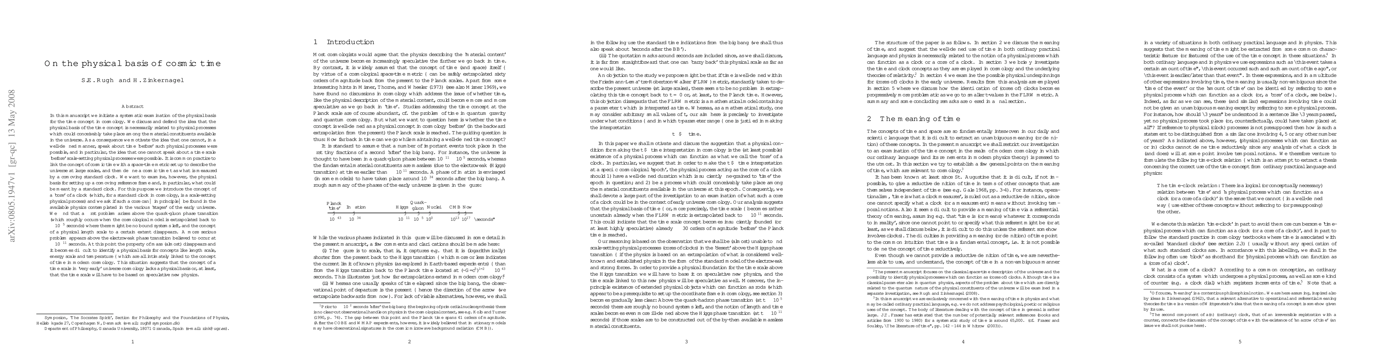Researchers question the physical basis of cosmic time, citing challenges in defining a 'standard clock' due to mass disappearance and loss of length scale concepts at early universe stages. This raises concerns about the need for speculative new physics to establish a time scale in very early universe cosmology.