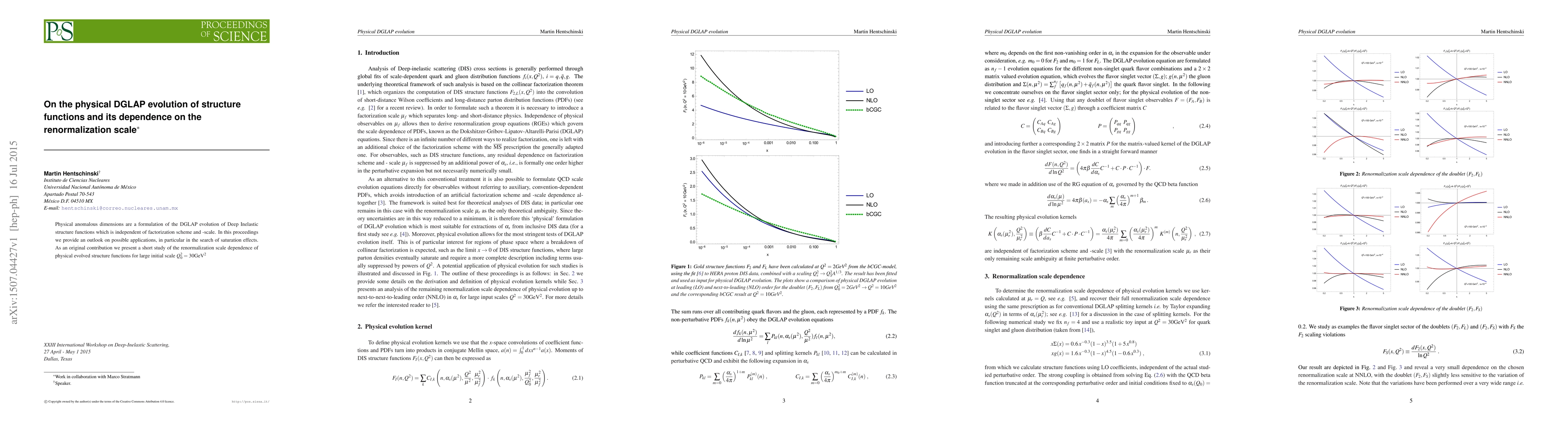 Physical anomalous dimensions are a formulation of the DGLAP evolution of Deep Inelastic structure functions which is independent of factorization scheme and -scale. In this proceedings we provide an outlook on possible applications, in particular in the search of saturation effects. As an original contribution we present a short study of the renormalization scale dependence of physical evolved structure functions for large initial scale $Q_0^2=30$GeV$^2$