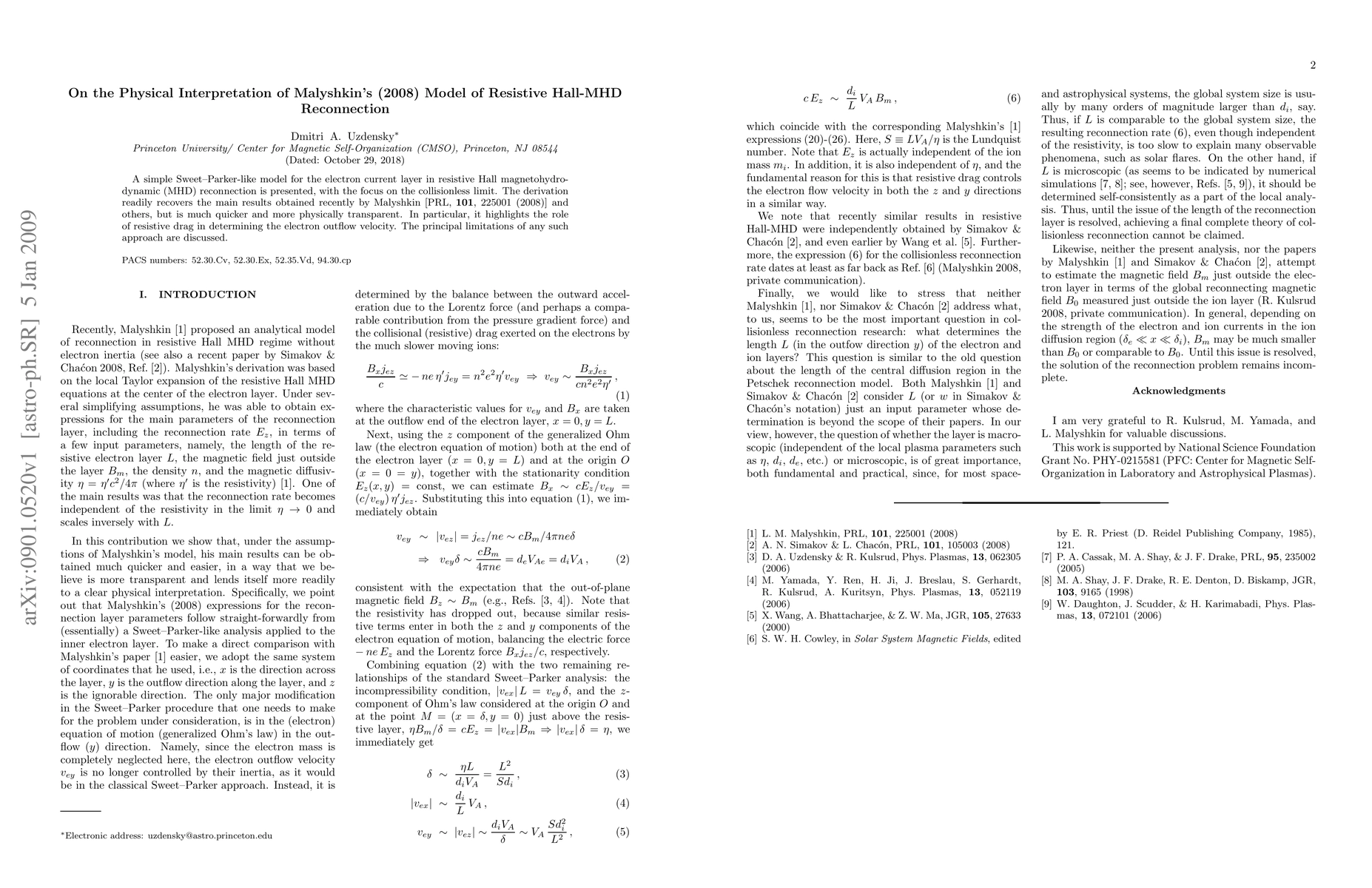 A simple Sweet--Parker-like model for the electron current layer in resistive Hall magnetohydrodynamic (MHD) reconnection is presented, with the focus on the collisionless limit. The derivation readily recovers the main results obtained recently by Malyshkin [PRL, 101, 225001 (2008)] and others, but is much quicker and more physically transparent. In particular, it highlights the role of resistive drag in determining the electron outflow velocity. The principal limitations of any such approach are discussed.