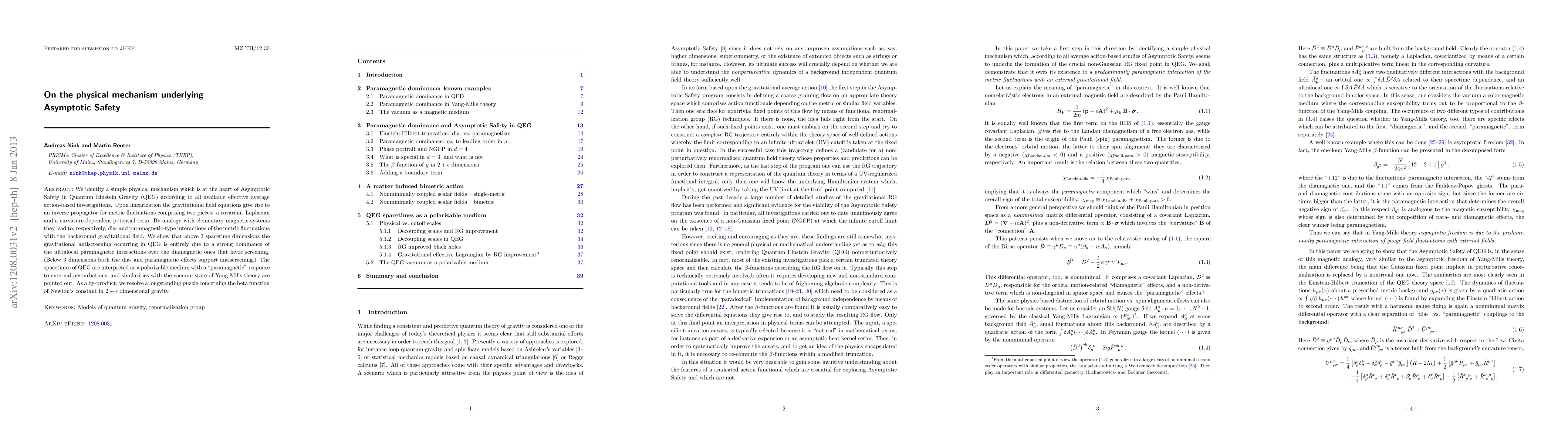 We identify a simple physical mechanism which is at the heart of Asymptotic Safety in Quantum Einstein Gravity (QEG) according to all available effective average action-based investigations. Upon linearization the gravitational field equations give rise to an inverse propagator for metric fluctuations comprising two pieces: a covariant Laplacian and a curvature dependent potential term. By analogy with elementary magnetic systems they lead to, respectively, dia- and paramagnetic-type interactions of the metric fluctuations with the background gravitational field. We show that above 3 spacetime dimensions the gravitational antiscreening occurring in QEG is entirely due to a strong dominance of the ultralocal paramagnetic interactions over the diamagnetic ones that favor screening. (Below 3 dimensions both the dia- and paramagnetic effects support antiscreening.) The spacetimes of QEG are interpreted as a polarizable medium with a "paramagnetic" response to external perturbations, and similarities with the vacuum state of Yang-Mills theory are pointed out. As a by-product, we resolve a longstanding puzzle concerning the beta function of Newton's constant in 2+{\epsilon} dimensional gravity.