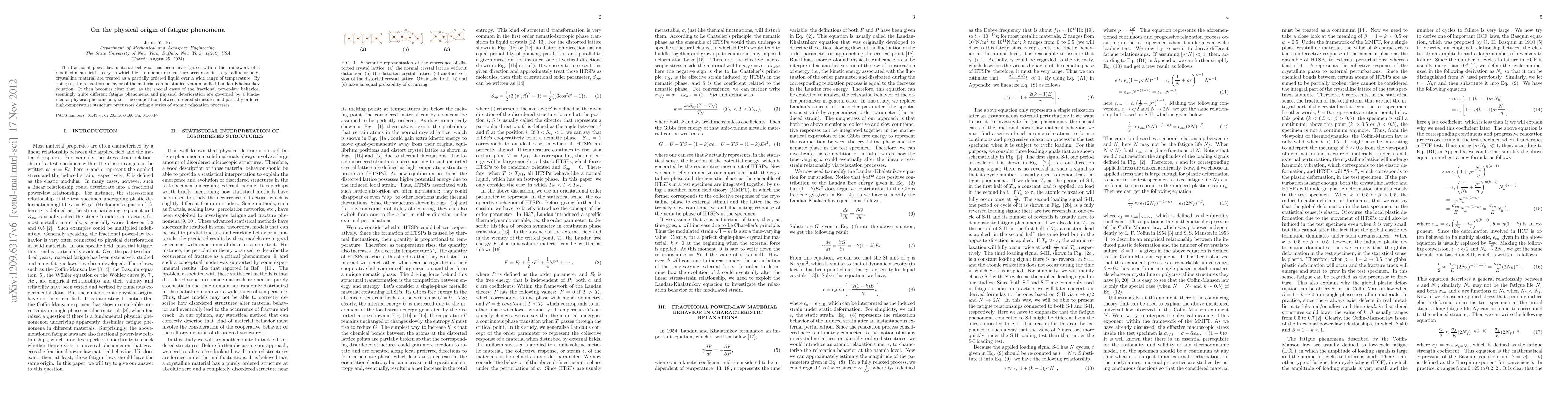 The fractional power-law material behavior has been investigated within the framework of a modified mean field theory, in which high-temperature structure precursors in a crystalline or polycrystalline material are treated as a partially ordered liquid over a wide range of temperature. By doing so, the relaxation behavior of the material can be studied via a modified Landau-Khalatnikov equation. It then becomes clear that, as the special cases of the fractional power-law behavior, seemingly quite different fatigue phenomena and physical deterioration are governed by a fundamental physical phenomenon, i.e., the competition between ordered structures and partially ordered high-temperature structure precursors during a series of atomic relaxation processes.
