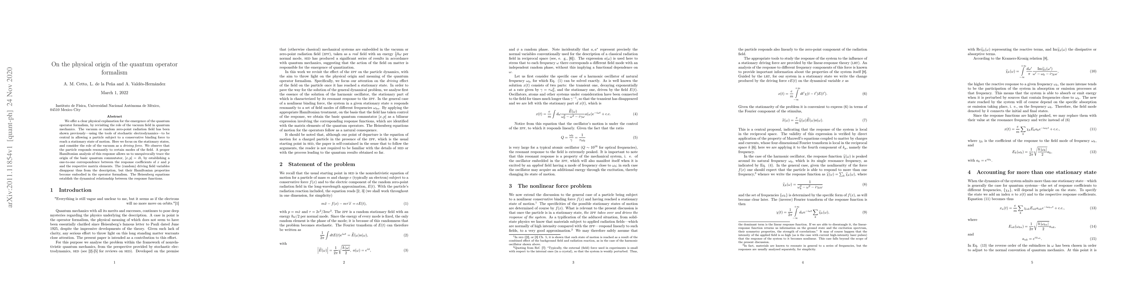 We offer a clear physical explanation for the emergence of the quantum operator formalism, by revisiting the role of the vacuum field in quantum mechanics. The vacuum or random zero-point radiation field has been shown previously, using the tools of stochastic electrodynamics, to be central in allowing a particle subject to a conservative binding force to reach a stationary state of motion. Here we focus on the stationary states, and consider the role of the vacuum as a driving force. We observe that the particle responds resonantly to certain field modes. A proper Hamiltonian analysis of this response allows us to unequivocally trace the origin of the basic quantum commutator, by establishing a one-to-one correspondence between the response coefficients of x and p and the respective matrix elements. The (random) driving field variables disappear thus from the description, but their Hamiltonian properties become embodied in the operator formalism. The Heisenberg equations establish the dynamical relationship between the response functions.